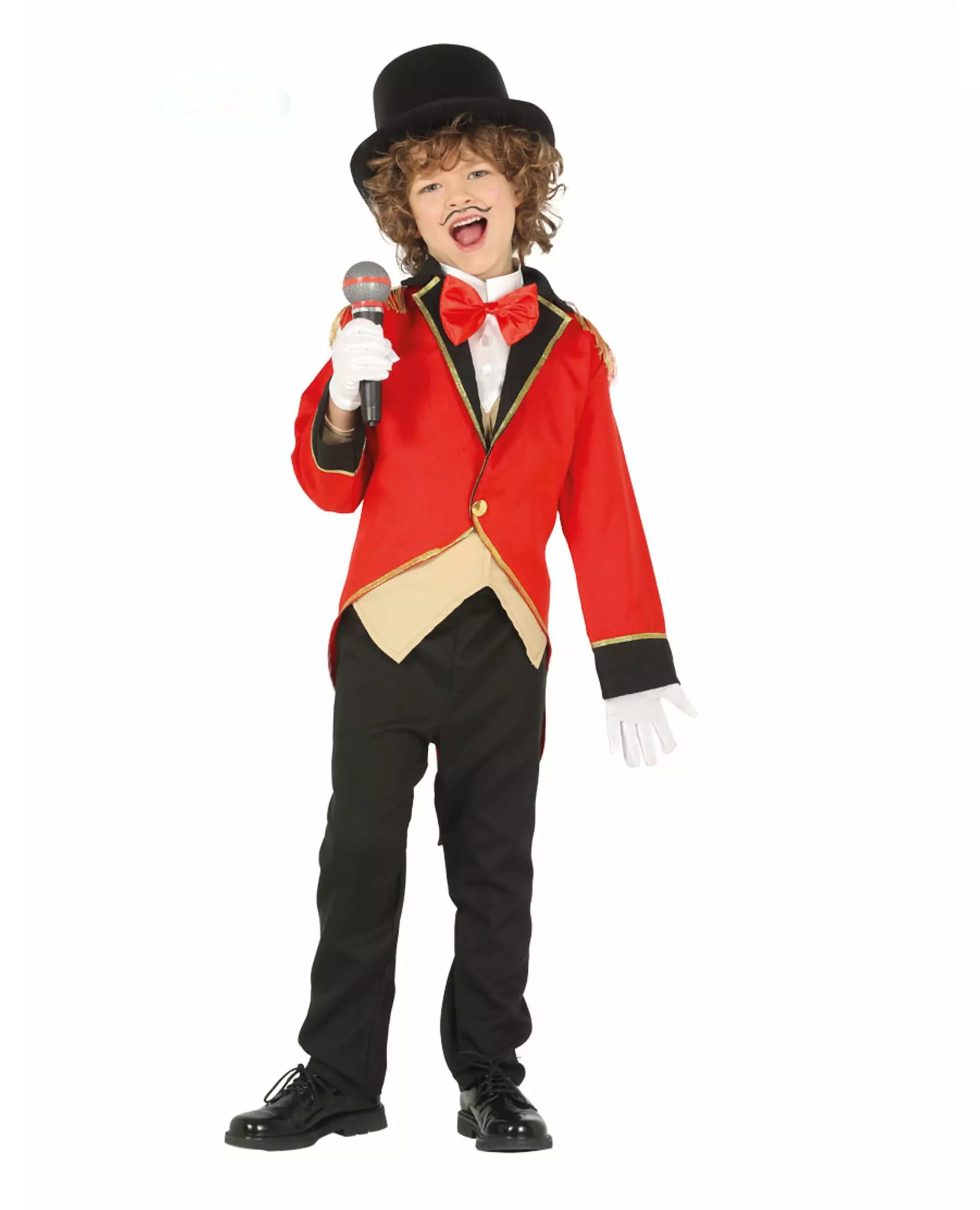 Ringmesterkostyme for gutter. Styr sirkuset som en sjef i dette ringmesterkostymet. Dette ringmesterkostymet for barn består av en topp og bukser (hatt, mikrohansker og sko er ikke inkludert). Toppen er en rød og svart frakk med gulldetaljer. Barnekostymet inkluderer: Topp, bukser