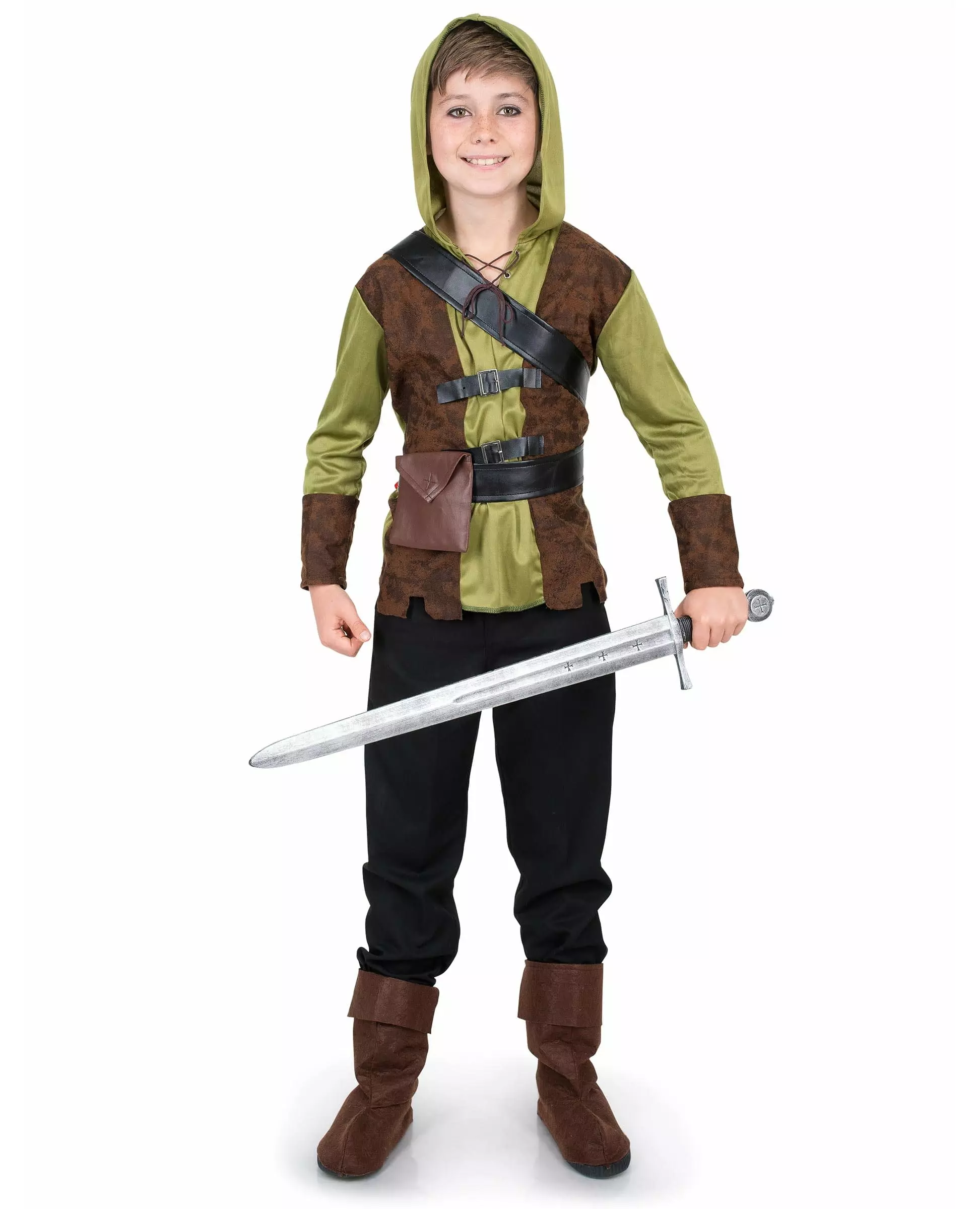 Kom igjen! Dette skogsmannkostymet for gutter består av en hettegenser, en vest, bukseseler, et belte og støveltrekk (sverd, bukser og sko er ikke inkludert). Hettegenseren er grønn, og ermekantene er brune. Den brune vesten er ermeløs og er sydd over hettegenseren. Selene er svarte og har en lomme. Støveltrekkene er brune. Dette settet vil være ideelt for sønnen din til en kostymefest eller karneval! Inkludert tilbehør: Hettegenser, vest, belte, skulderstropp, støveltrekk. Materiale: 100 % polyester. Vedlikehold: Håndvask.