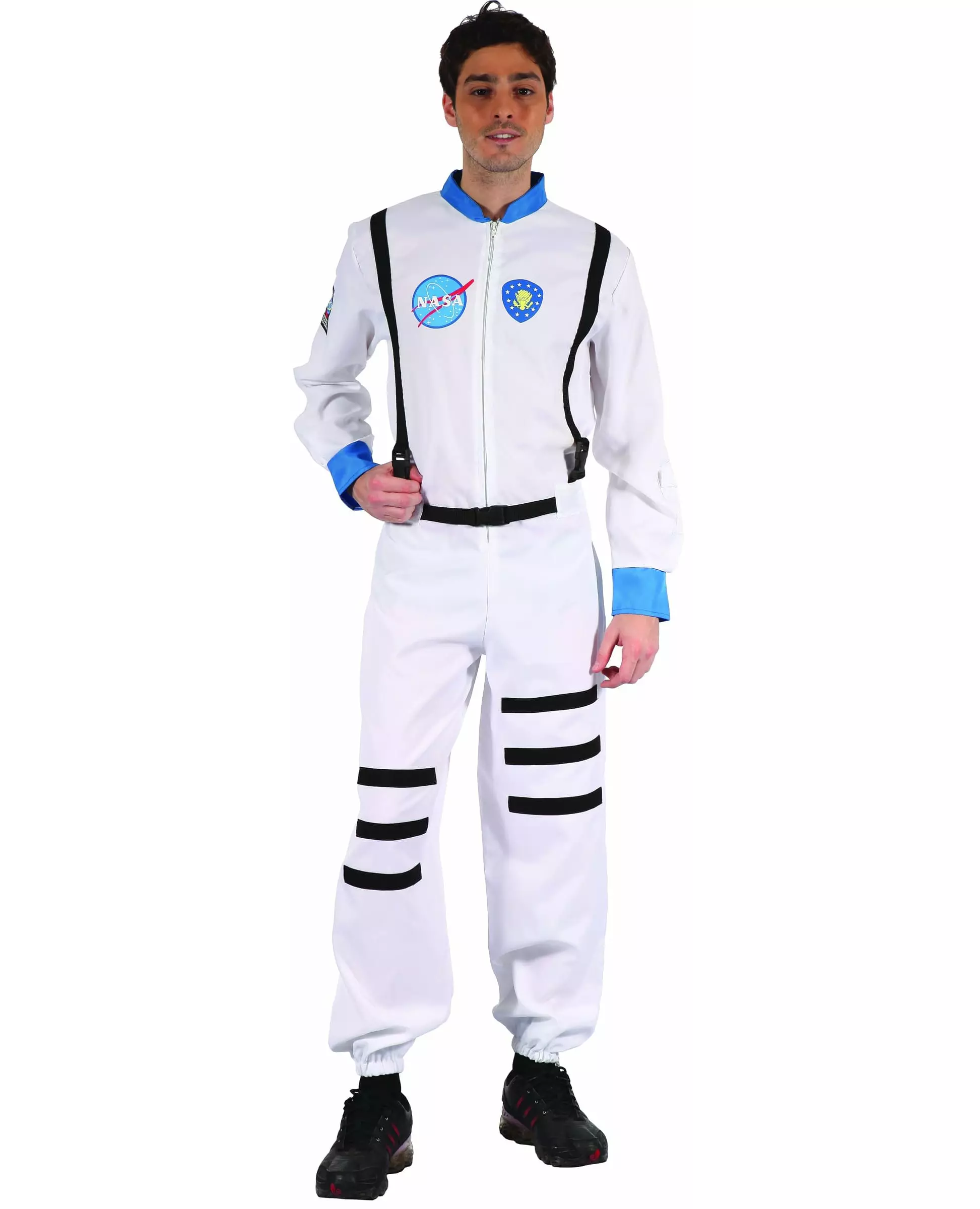 Sett foten på månen du også. Dette kosmonautkostymet for menn består av en jumpsuit (sko og hjelm er ikke inkludert). Denne jumpsuiten er hvit med blå krage og mansjetter. NASA-logoer er på bysten. Svarte stropper er også festet foran på jumpsuiten. Denne jumpsuiten lukkes foran med glidelås. Dette kostymet vil være perfekt for å erobre verdensrommet under en kostymefest med venner eller til karneval. Inkludert tilbehør: Jumpsuit Materiale: 100 % polyester Pleie: Håndvask