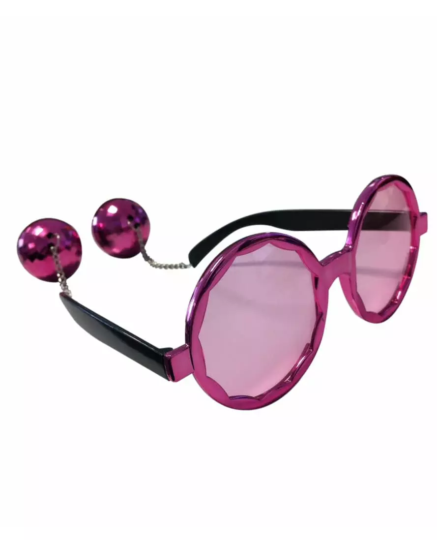 La oss gjenoppleve discoårene! Disse discobrillene for voksne er laget av skinnende rosa plast. De har rosafargede plastlinser. Små rosa discokuler er festet til endene av hver arm med en metallkjede. Dette tilbehøret vil være perfekt for å forvandle deg til discokongen under en kostymefest med venner. Inkludert tilbehør: Briller Materiale: Plast