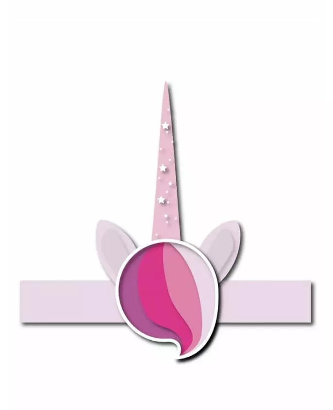 Perfekt til en enhjørningsfest! Disse enhjørningshodeplaggene i papp selges i pakker på seks. De er 27 cm høye. De har et vakkert rosa horn trykt med fine sølvstjerner. To rosa satengbånd til å knyte er plassert bak for å holde hodeplagget perfekt rundt hodet. Disse hodeplaggene vil være ideelle for datterens enhjørningstema-bursdagsfest! Inkludert tilbehør: 6 hodeplagger Materiale: Papp, bånd