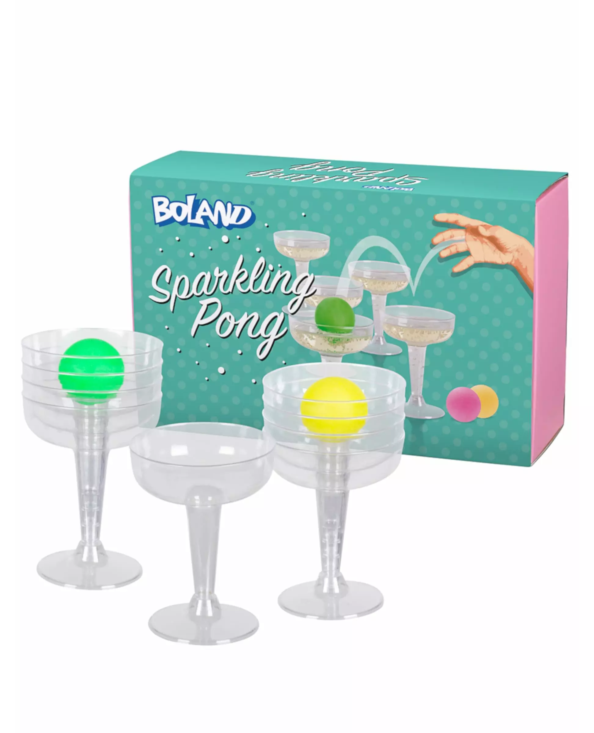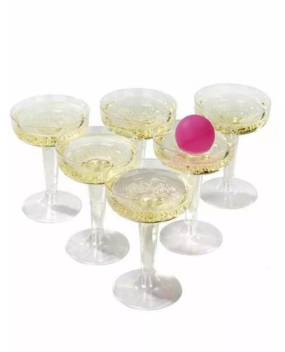 En glitrende versjon av Beer Pong. Dette Sparkling Pong-spillet består av 12 glass og 3 pingpongballer (tåler ikke oppvaskmaskin). Dette spillet, direkte inspirert av beer pong, vil live opp kveldene dine med venner. Glassene med stilk måler omtrent 11,5 cm høye, med en diameter på omtrent 8,5 cm øverst på glasset og 6,5 cm nederst. Pingpongballene har en diameter på omtrent 4 cm. Fargen sendes tilfeldig. Gjør den sosiale kvelden til en hyggelig fest med Sparkling Pong-spillet! Inkludert tilbehør: 12 glass 3 baller Materiale: Plast Stell: Håndvask