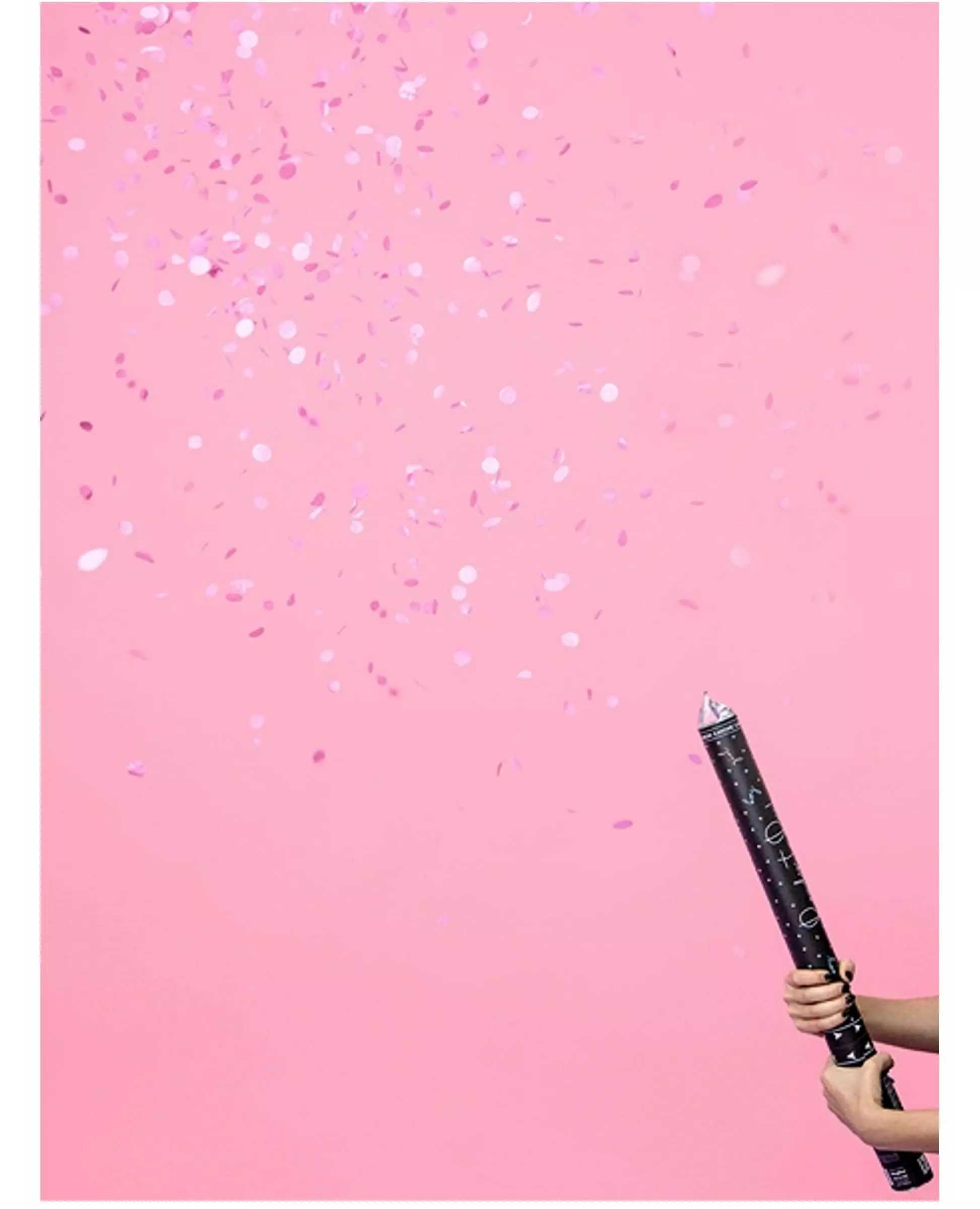 Lag en kunngjøring i rosa! Denne 60 cm rosa konfettikanonen er perfekt for å skape et sterkt og uforglemmelig øyeblikk på en fest. Bare vri på basen for å sende en dusj av rosa konfetti opp i luften. Den er enkel å bruke og lover en umiddelbar visuell effekt. Praktisk: et farget klistremerke på røret lar deg identifisere konfettiens fargetone hvis du kombinerer flere modeller. Ideell for å live opp en festlig bursdag eller feire slutten på singellivet i godt humør! Inkludert tilbehør: 1 rosa konfettikanon
