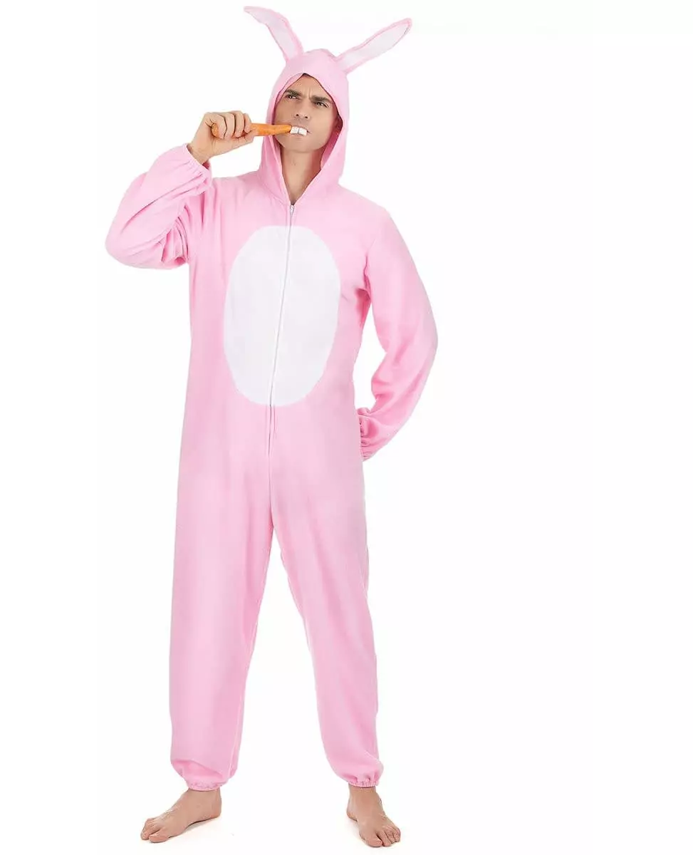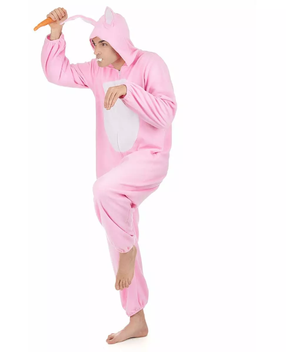Underhold vennene dine med dette rosa kaninkostymet! Dette rosa kaninkostymet for menn består av en jumpsuit med hette. Jumpsuiten er rosa. Den er laget av fleece og har glidelås foran for enkel bruk. Det er strikk ved håndledd og ankler for maksimal komfort. Hetten er sydd direkte på jumpsuiten. Den er toppet med to store, justerbare ører som måler omtrent 21 cm, og en liten hale bak på plagget vil gi antrekket det lille ekstra. Dette kaninkostymet vil være perfekt for å underholde vennene dine på en temafest eller til et utdrikningslag. Inkludert tilbehør: Jumpsuit med hette Materiale: 100 % polyester Vedlikehold: Håndvask