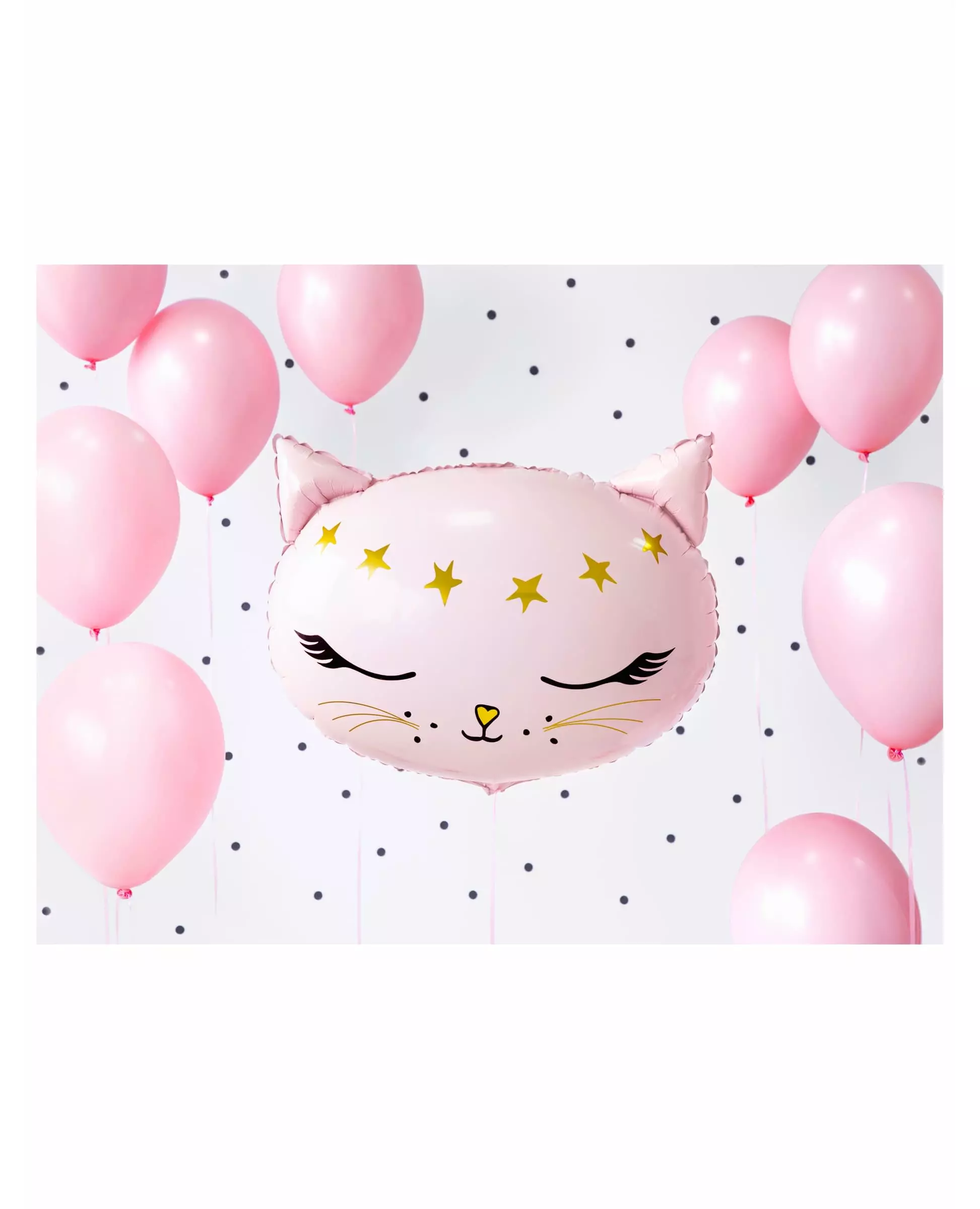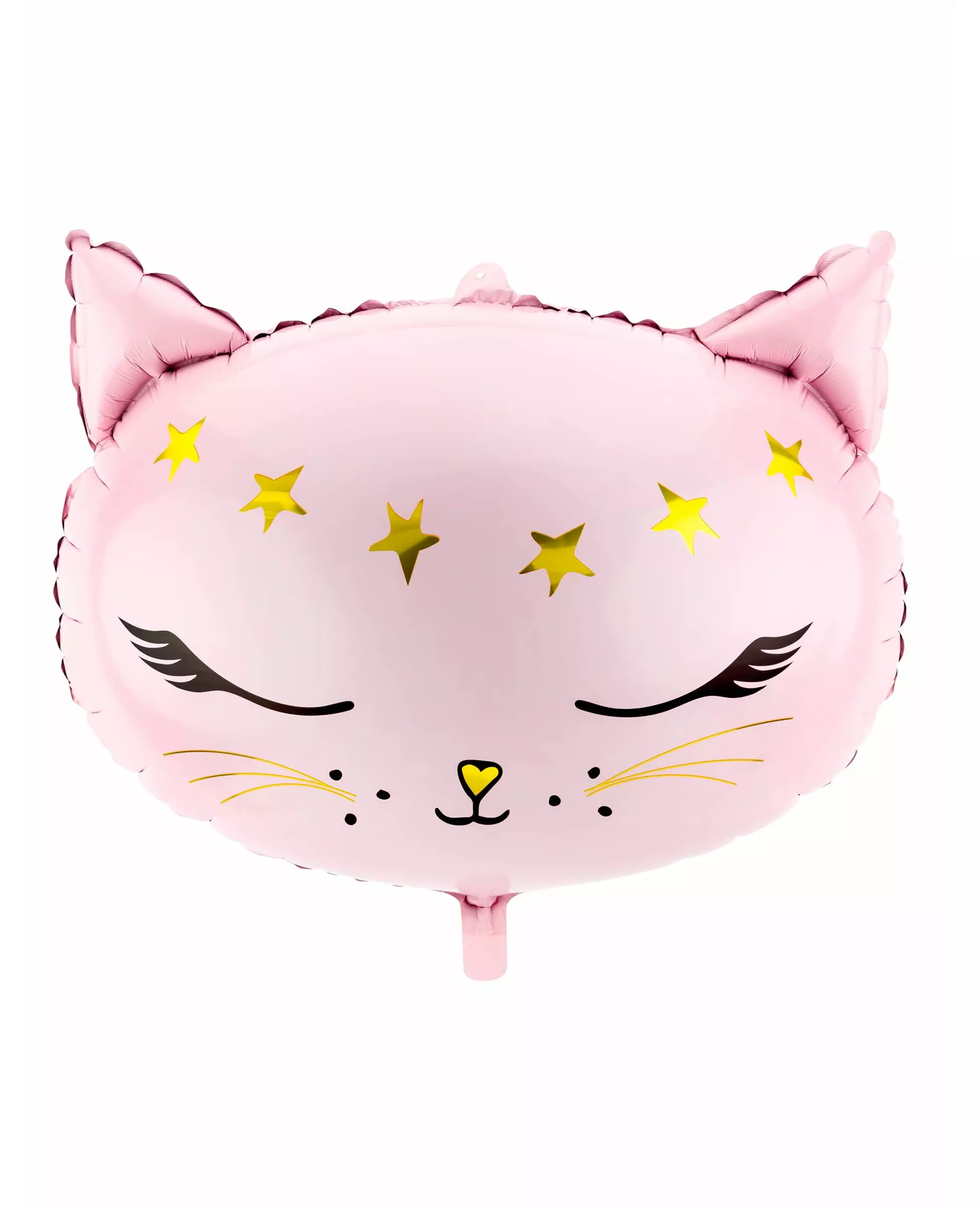 En elegant og jentete ballong akkurat slik vi liker den! Denne ballongen er laget av aluminium og måler omtrent 48 x 36 cm. Den har formen som en praktfull, lyserosa katt. Den er dekorert med pene, gylne stjerner som danner en krone. Denne ballongen kan blåses opp med luft eller helium. Denne rosa katteballongen vil gi mykhet og letthet til dekorasjonen din under en bursdag eller en temafest! Inkludert tilbehør: 1 ballong Materiale: Aluminium