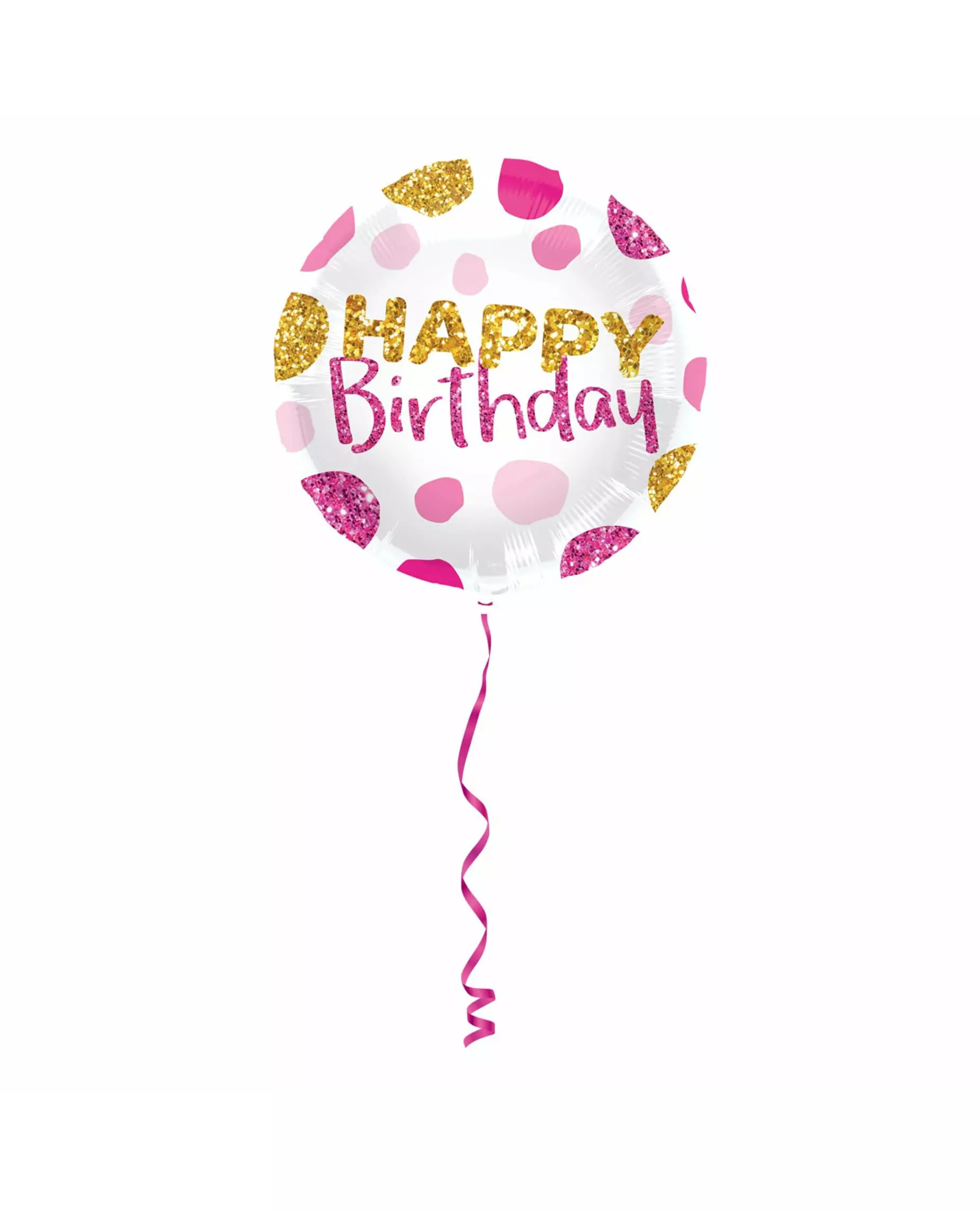 Rosa og gull folieballong med bursdagsmotiv, 45 cm