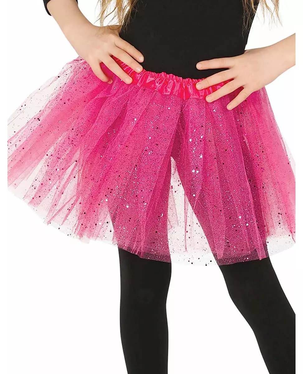 Peonrosa! Denne tutuen for jenter er laget av rosa tyllpaneler besatt med sølvpaljetter som får den til å glitre. Midjen er elastisk. Den vil være perfekt for å fullføre et sommerfugl- eller fekostyme til karneval. Inkludert tilbehør: Tutu