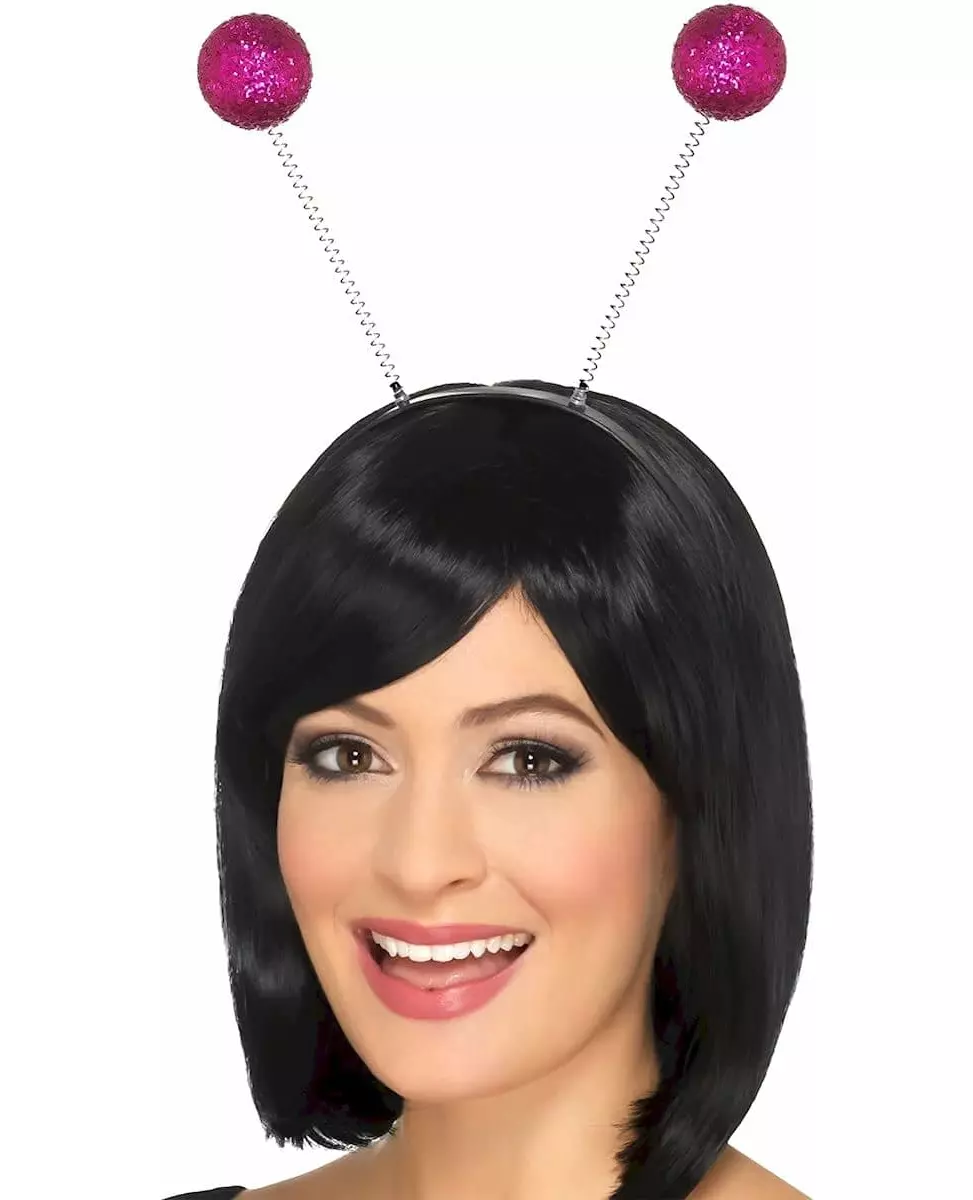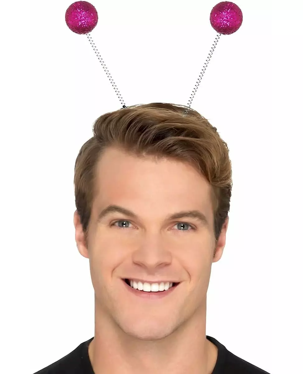 Rosa paljetter! Dette tilbehøret for voksne er et pannebånd. Det er svart og har to kuler dekket av rosa paljetter. Disse to kulene holdes på sølvfjærer. Det vil være ideelt som et supplement til diskokostymet ditt til en utkledningsfest! Inkludert tilbehør: Pannebånd
