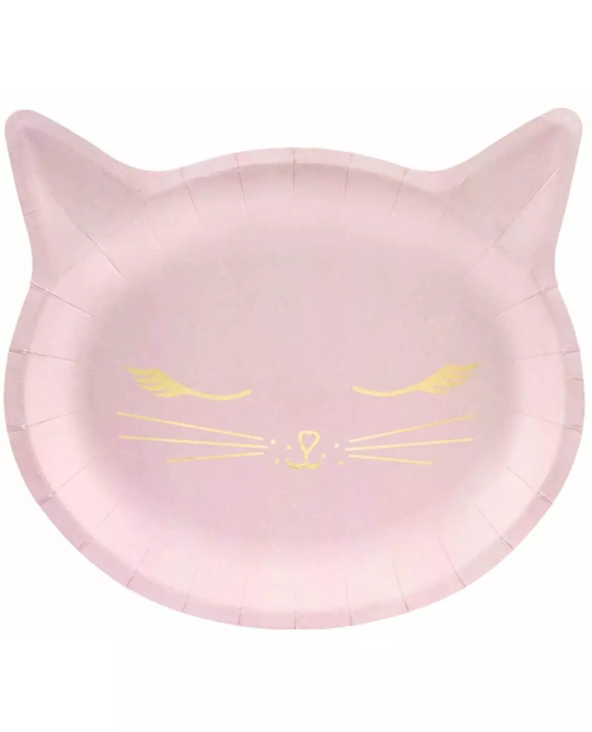 Spis med kattungen din! Disse 6 kattungetallerkenene er laget av papp. De er rosa med et gyllent kattungeansikt. De måler nesten 22 x 20 cm. De vil være perfekte til en liten jentes bursdagsfest! Inkludert tilbehør: 6 tallerkener Materiale: Papp