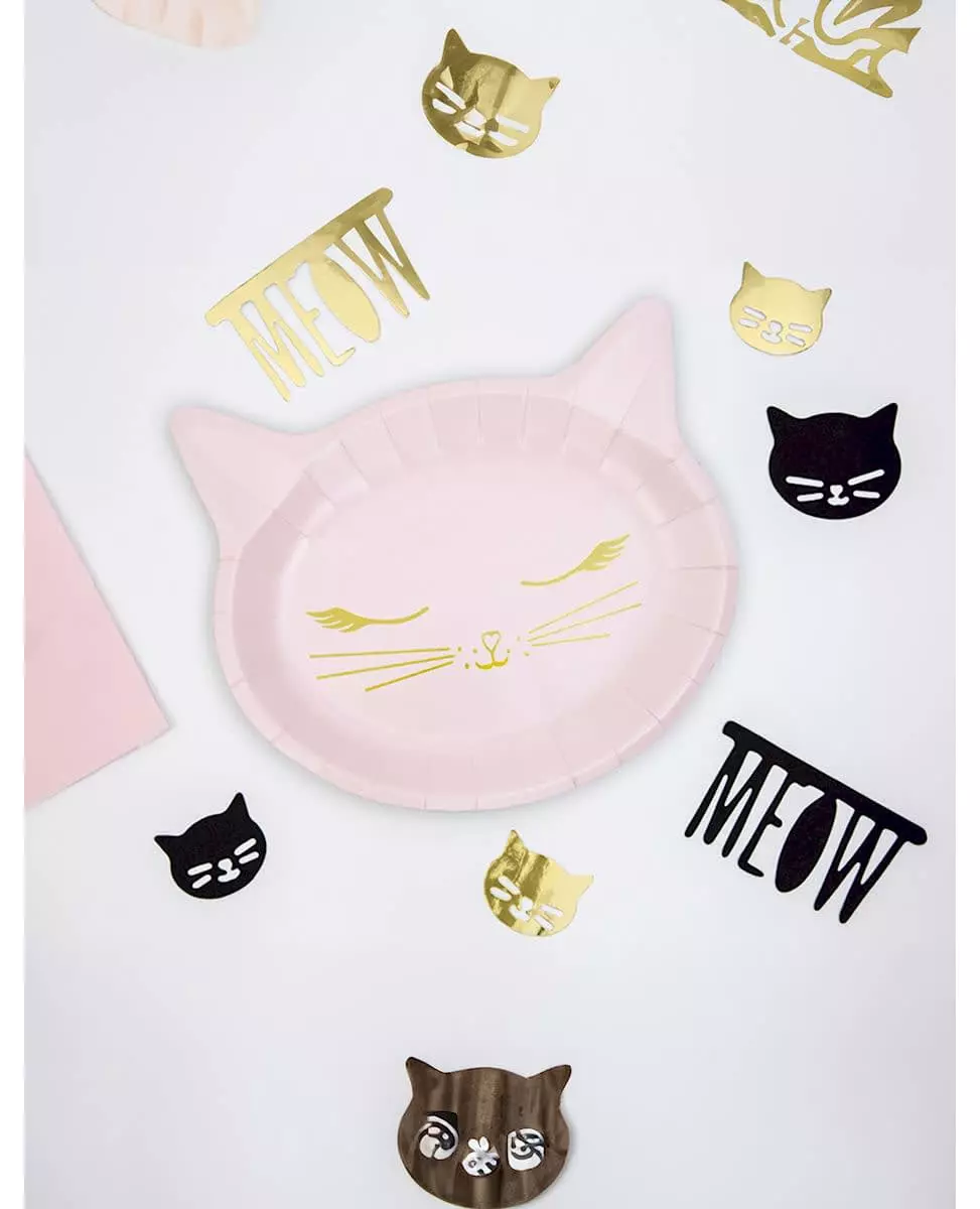 rosa papirtallerkener med kattungehoder 22 x 20 cm