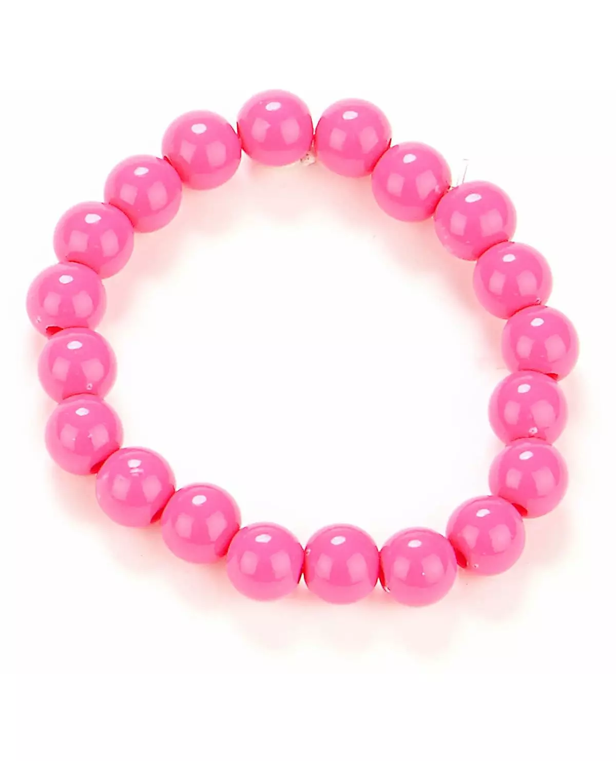 Fargerikt! Dette armbåndet med plastperler er rosa. Det er elastisk på håndleddet. Dette tilbehøret vil være perfekt for en fargerik fest eller en fest med 80-tallstema. Materiale: Plast