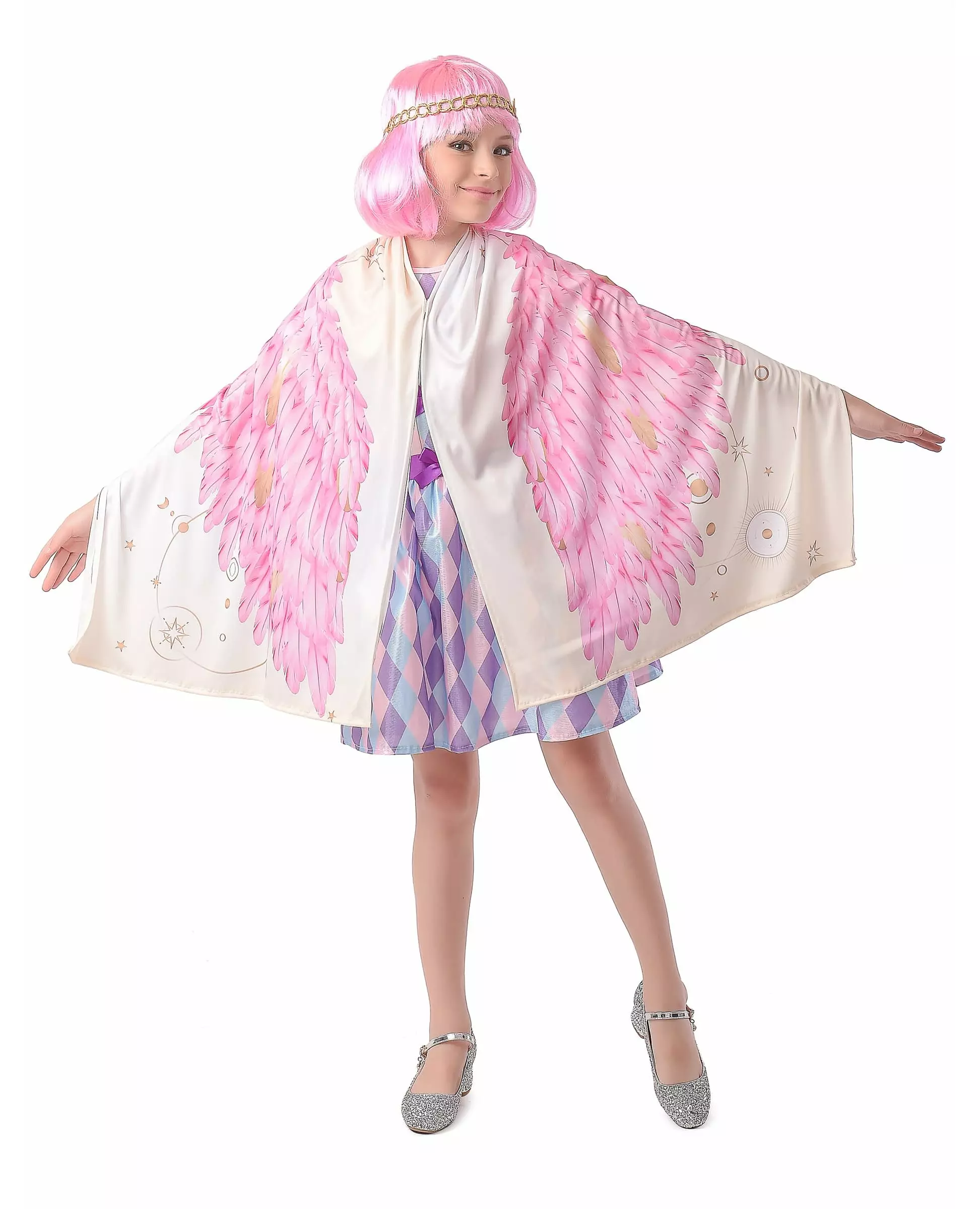 En engel i himmelen! Dette englekostymet for jenter består av en kappe og et pannebånd (parykk, kjole og sko er ikke inkludert). Kappen i ponchostil er hvit og dekorert med rosa vinger. Den er også dekorert med forskjellige stjerne- og sirkelmønstre. En lukking foran gjør at kappen enkelt kan lukkes. Pannebåndet er laget av gulllenker. Legemliggjør en ekte engel med dette kostymet til karneval! Inkludert tilbehør: Kappe Pannebånd Materiale: 100 % polyester Stell: Håndvask