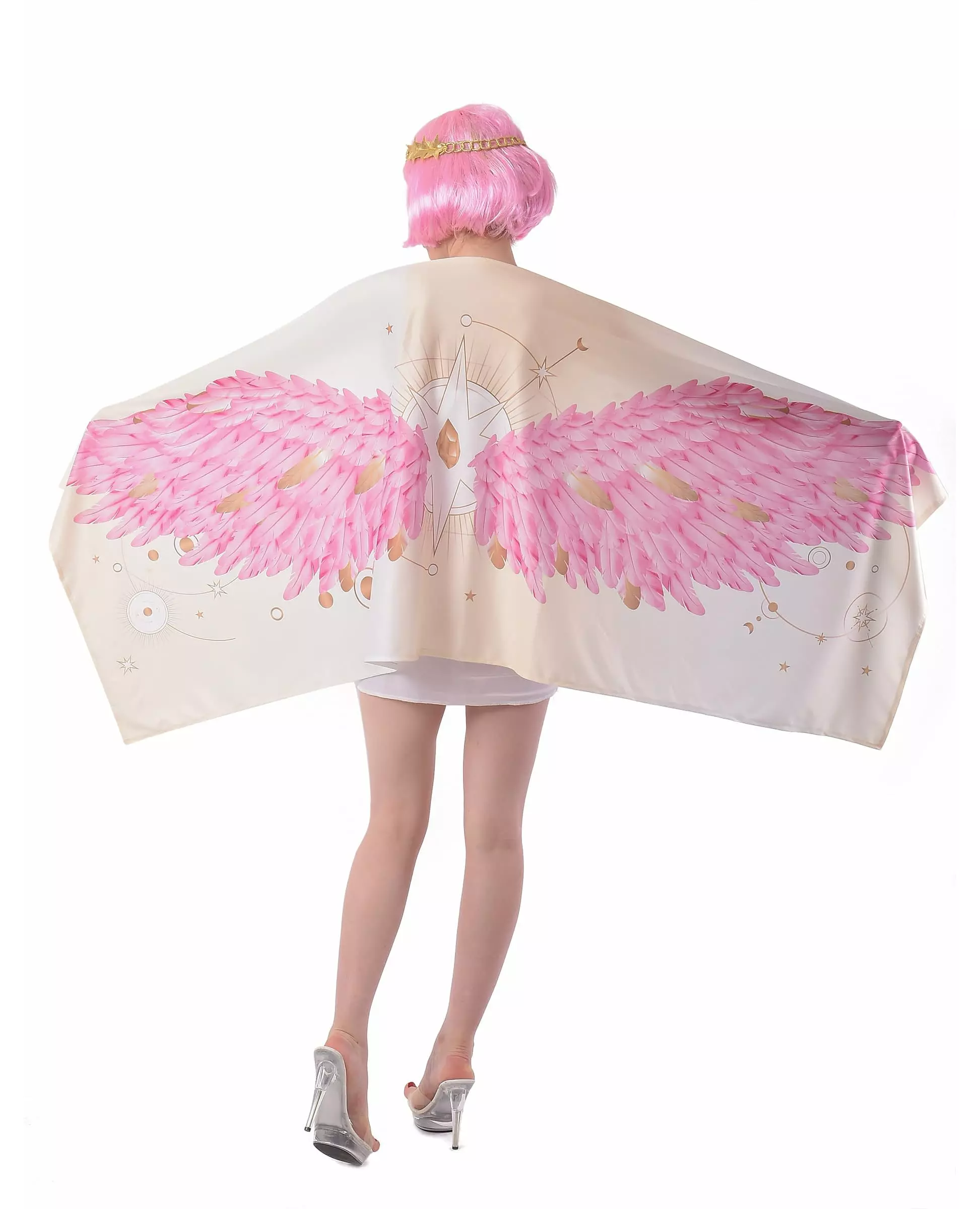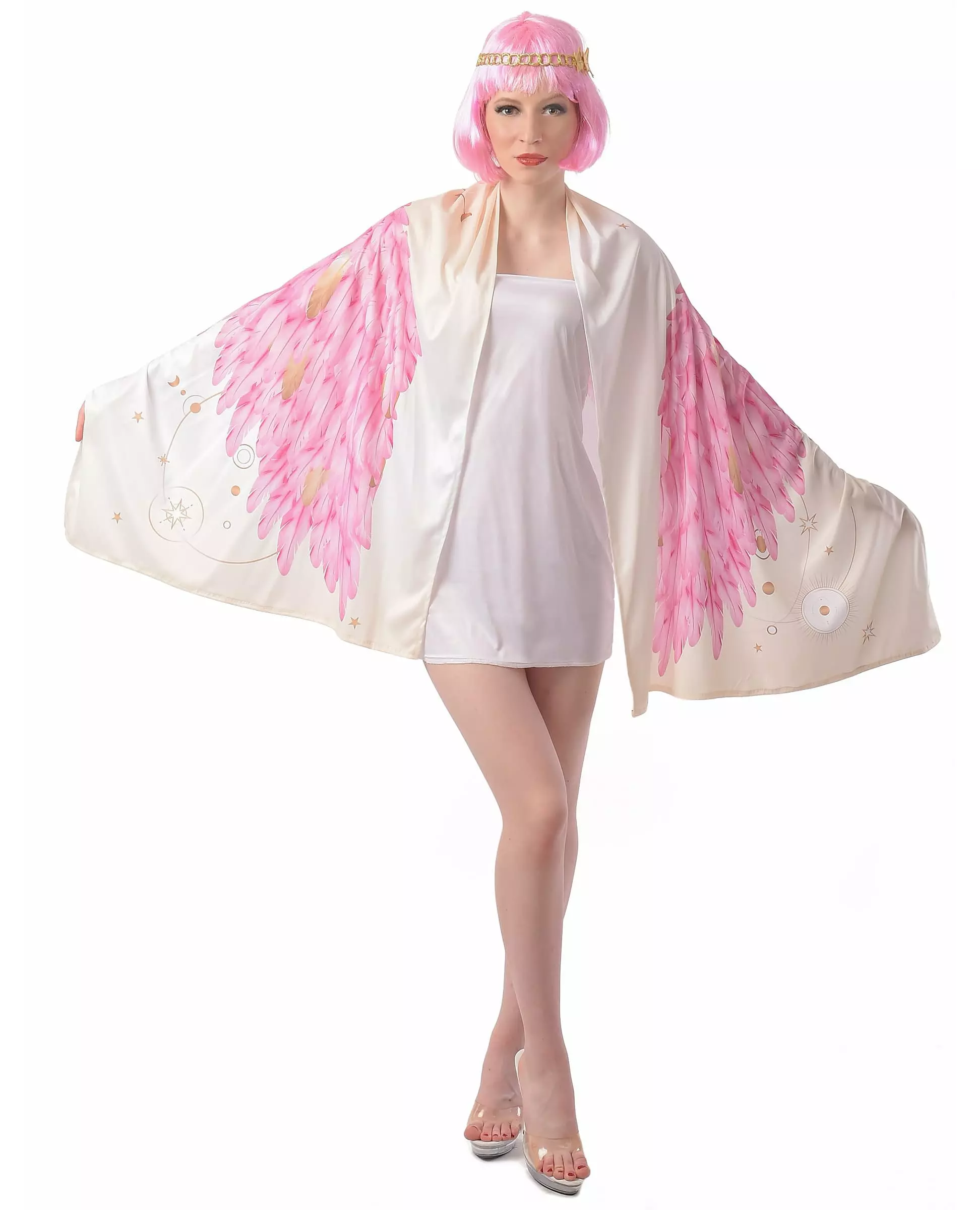 Søtt rosa og hvitt engelkostyme! Dette engelkostymet for kvinner består av en kappe og et pannebånd (parykk, kjole og sko er ikke inkludert). Kappen i ponchostil er hvit med en konstellasjonsdekorasjon. Den er også utsmykket med et par rosa vinger. Pannebåndet er laget av gullfargede lenker. Våg å være original med dette rosa og hvite engelkostymet til en himmeltemafest! Inkludert tilbehør: Kappe Pannebånd Materiale: 100 % polyester Vedlikehold: Håndvask