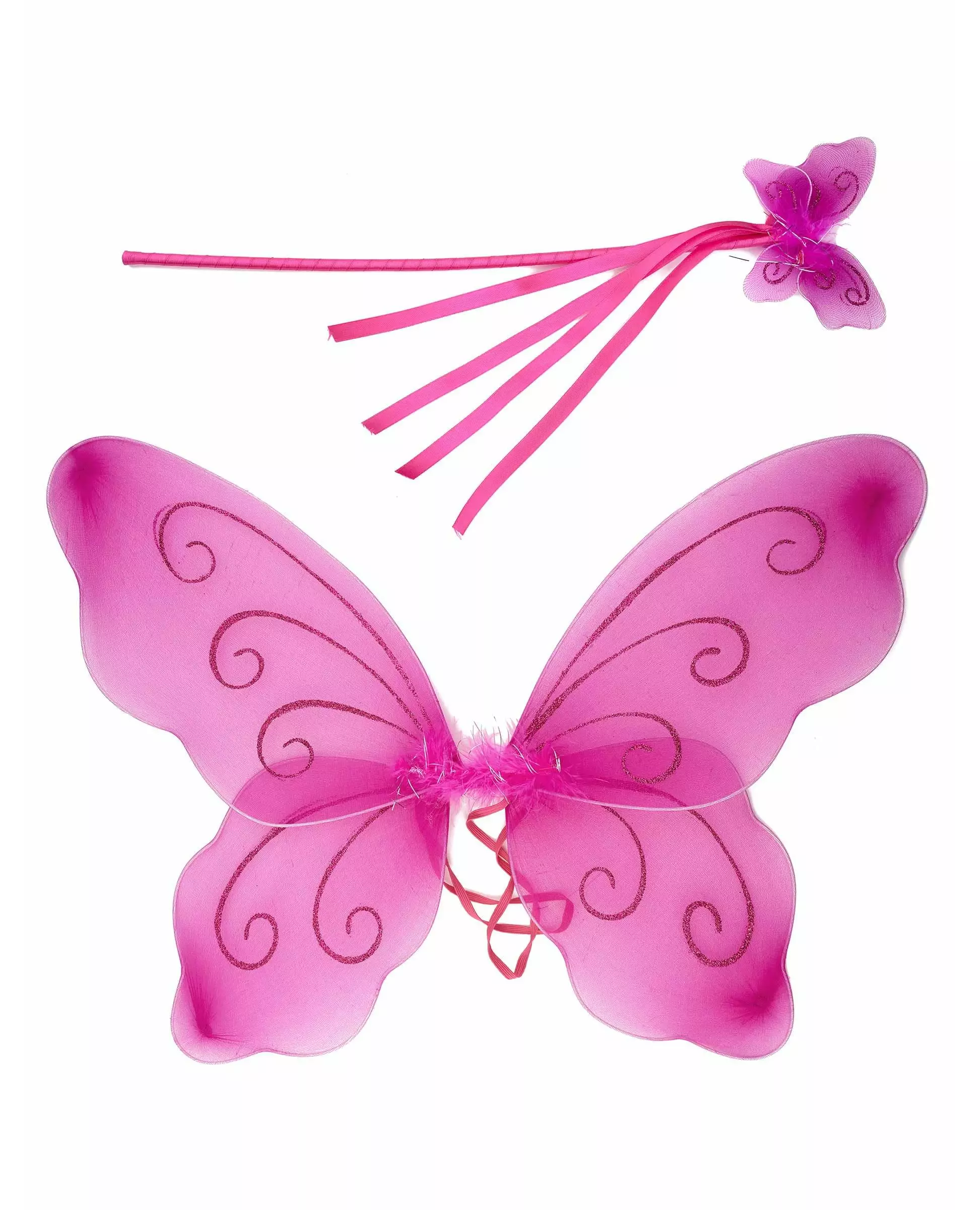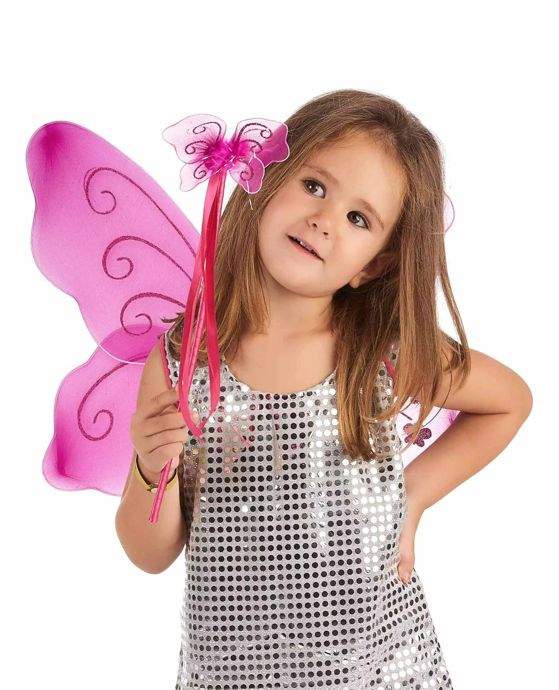 Rosa sommerfuglvinger og matchende tryllestav til barn