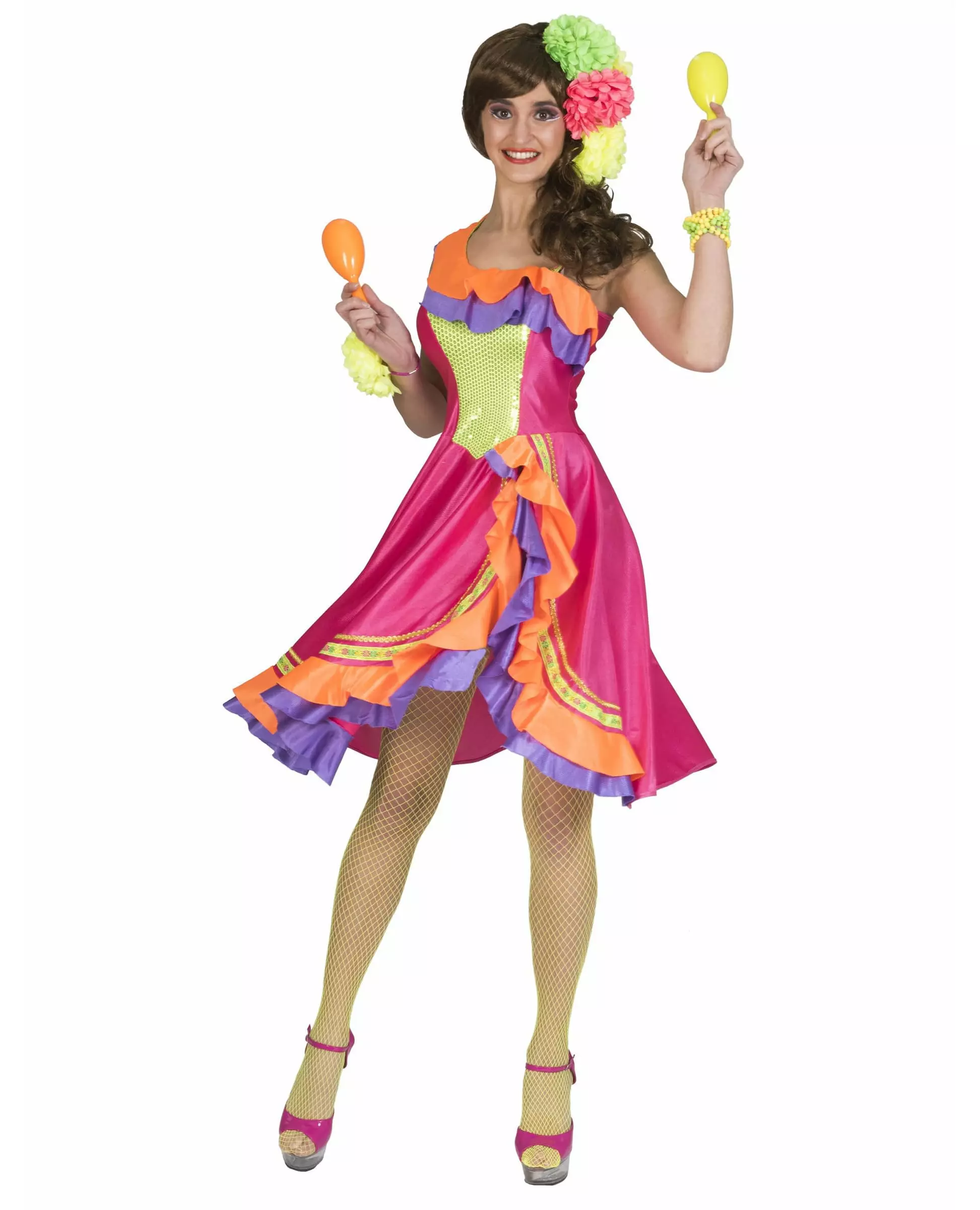 Rumba-danserkostyme for kvinner, latinamerikansk kveld. Dette rumba-danserkostymet er for kvinner. Det inneholder en kjole. Voksenkostymet inkluderer: Kjole.