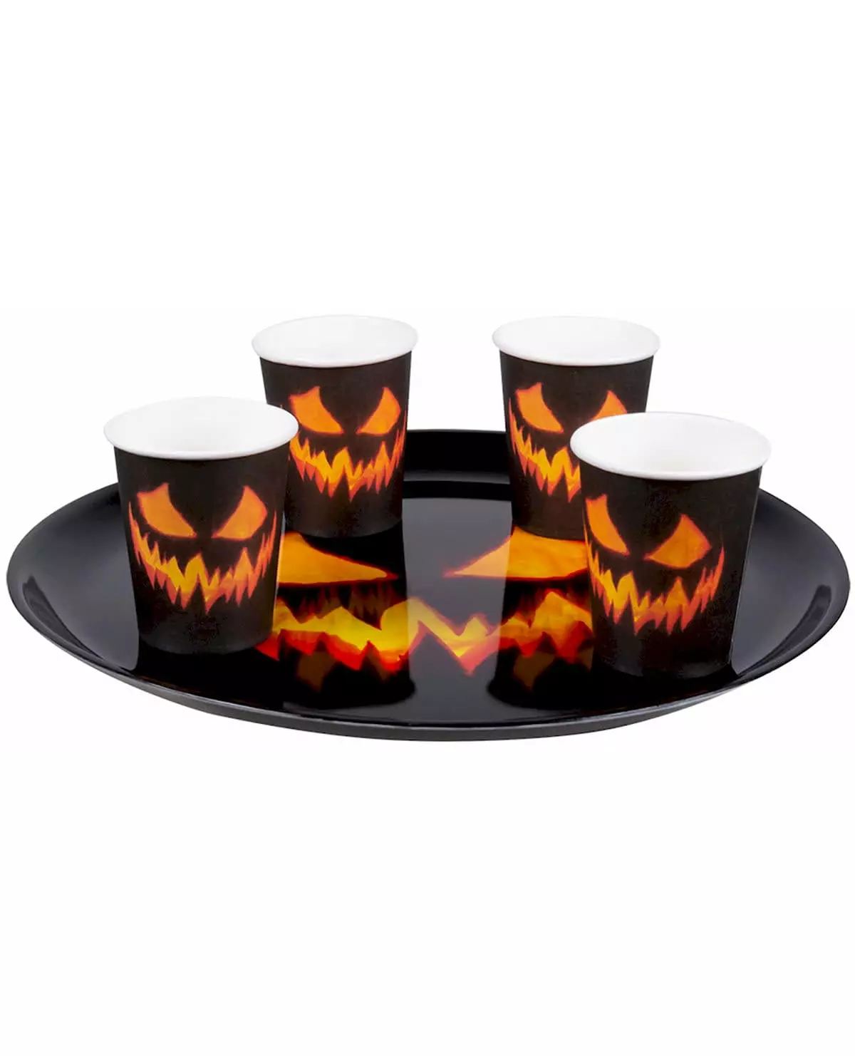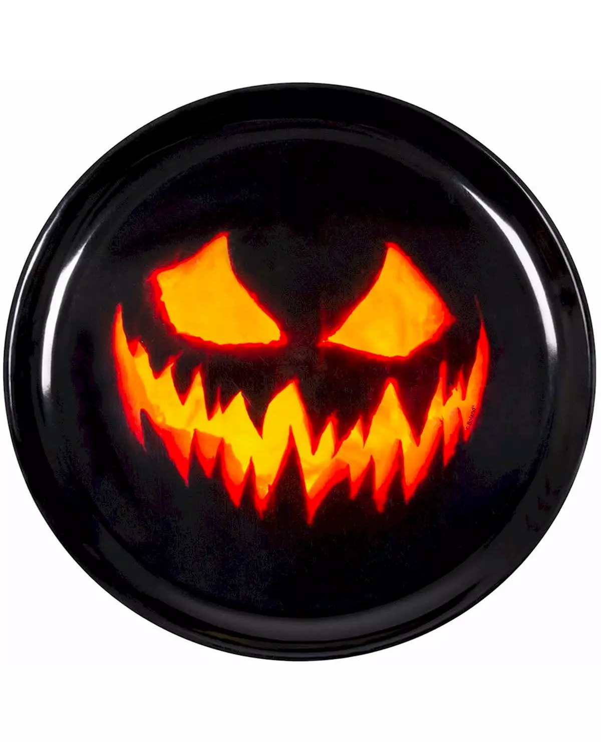 Gi innredningen din et ekstra preg med dette gresskarbrettet! Dette skumle gresskarbrettet er rundt. Det måler omtrent 34,5 cm i diameter. Brettet er svart med et skummelt oransje gresskar i midten som relaterer seg til den skrekkmessige siden av Halloween. Dette brettet vil fullføre innredningen din for en perfekt Halloween-fest. Inkludert tilbehør: Brett