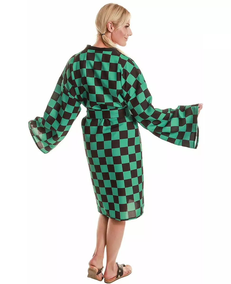 For en cosplay av din favorittmanga! Dette kostymet er en kimono for voksne. Den representerer kimonoen som tilhører en karakter fra en berømt manga. Kimonoen er svart og grønn rutete. Den stopper ved kneet og lukkes med et belte i samme mønster som kimonoen. Velg en kimono med rutete mønster for å legemliggjøre din favorittmangakarakter!. Inkludert tilbehør: Jakke og belte Materiale: 100 % polyester Pleie: Håndvask