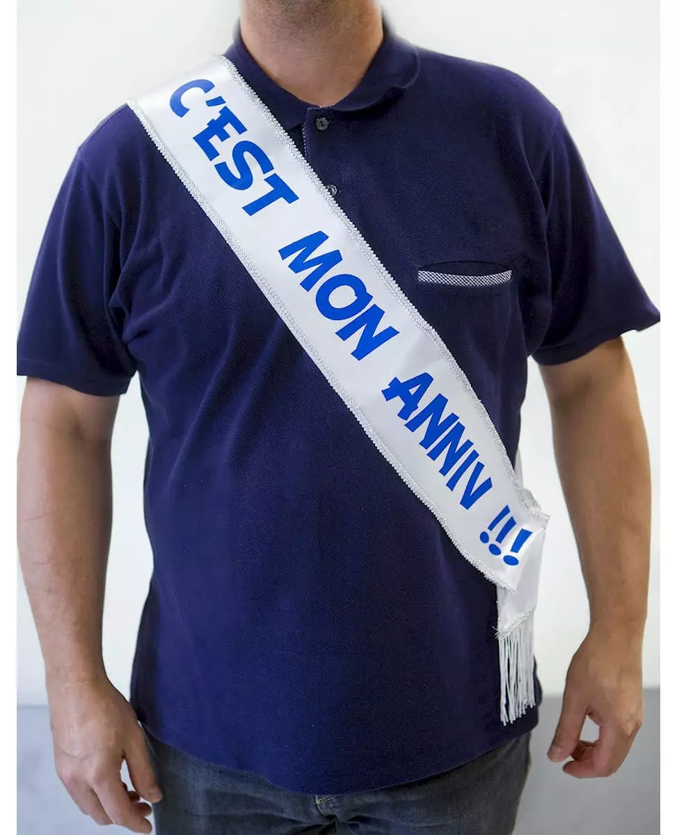 Du er festens dronning! Dette skjerfet, omtrent 150 cm langt og 10 cm bredt, er for voksne. Det er laget av hvitt satengstoff med sølvkant og frynser med inskripsjonen «It's My Birthday!!!» i marineblått. Dette skjerfet vil være det essensielle tilbehøret til bursdagsfesten din. Inkludert tilbehør: 1 skjerf Materiale: 100 % polyester Målinformasjon: 150 x 10 cm utbrettet