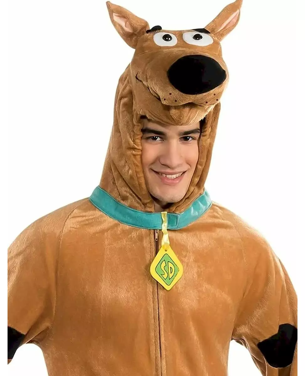 Fantastisk! Dette Scooby-Doo™-kostymet, den berømte hunden fra tegnefilmen, består av en brun plysjjumpsuit, et hodeplagg med ansiktet til Scooby Doo™ og et blått halsbånd med initialene SD. Hale og hansker er inkludert. Dette kostymet er ideelt for å glide inn i huden til den berømte hunden Scooby-Doo™. Inkludert tilbehør: Jumpsuit Hodeplagg Halsbånd Materiale: 100 % polyester Stell: Håndvask