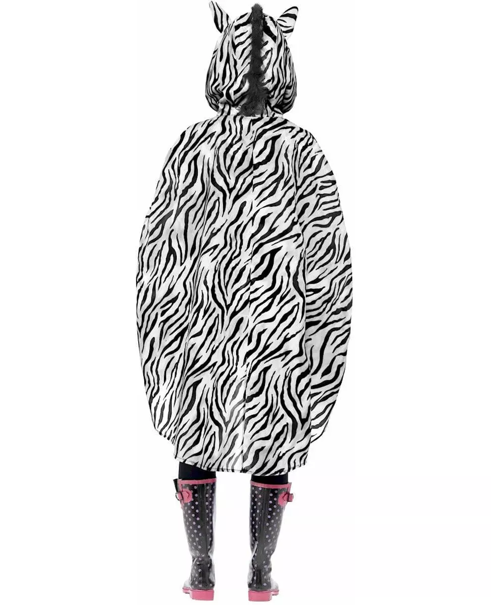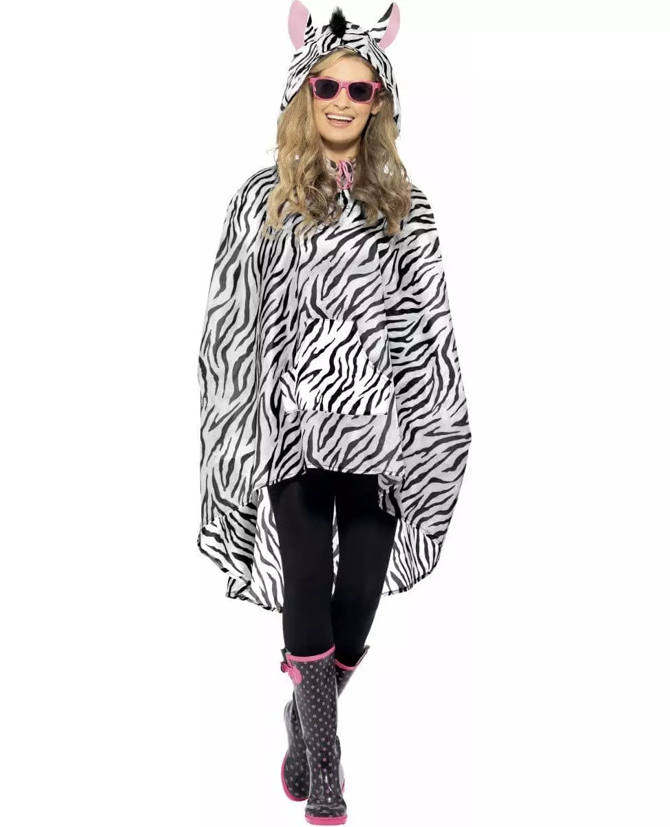 Hold deg stilig under alle omstendigheter med denne sebraponchoen. Denne sebraponchoen for voksne er svart og hvit. Den har en svart hette som representerer sebrahodet. Hetten er dekorert med en liten man av svart syntetisk hår samt avrundede ører på toppen av hodet. Denne sebrahetten kan strammes rundt ansiktet med rosa bånd som knytes foran. Det er også borrelås nederst på hetten for å gjøre den enkel å ha på seg. En stor lomme på magen lar deg oppbevare dine personlige eiendeler. Vanntett og lett, denne ponchoen er lengre bak. Den måler omtrent 68 cm lang foran og 100 cm lang bak (unntatt hetten). Denne ponchoen leveres med en liten matchende veske som måler 22 x 14 cm for enkel bæring. Denne sebraponchoen vil være perfekt for å fullføre antrekket ditt på en vill og original måte på utendørsfestivaler. Inkludert tilbehør: Poncho Materiale: 100 % polyester Pleie: Håndvask