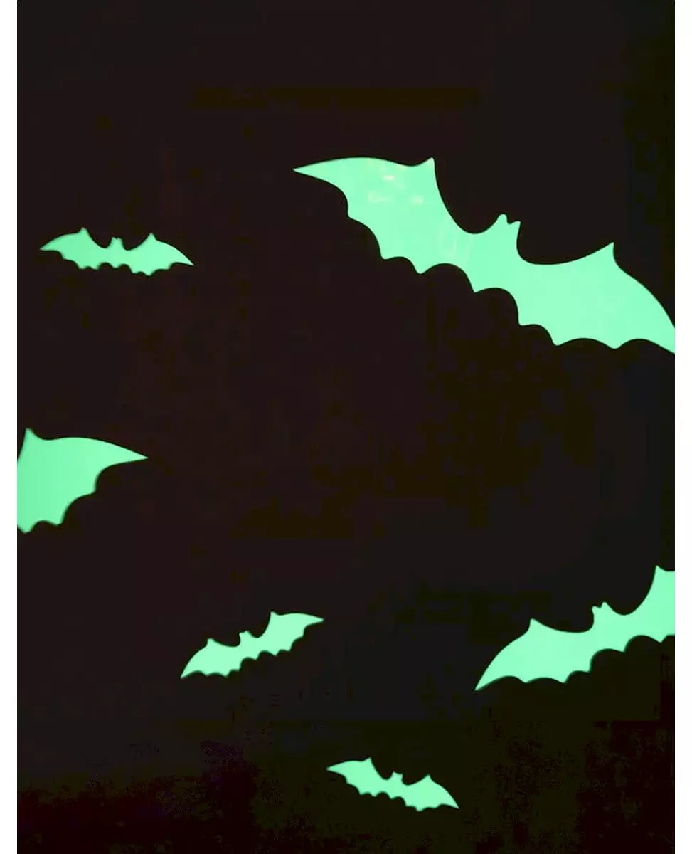 Når natten faller på ... Dette settet inneholder 6 klistremerker som varierer fra 2,5 til 6 cm. De er formet som en flaggermus og blir fosforescerende når natten faller på ...! Fullfør interiørdekorasjonen din med dette settet til Halloween-festen din! Inkludert tilbehør: 1 ark med klistremerker Materiale: Plast