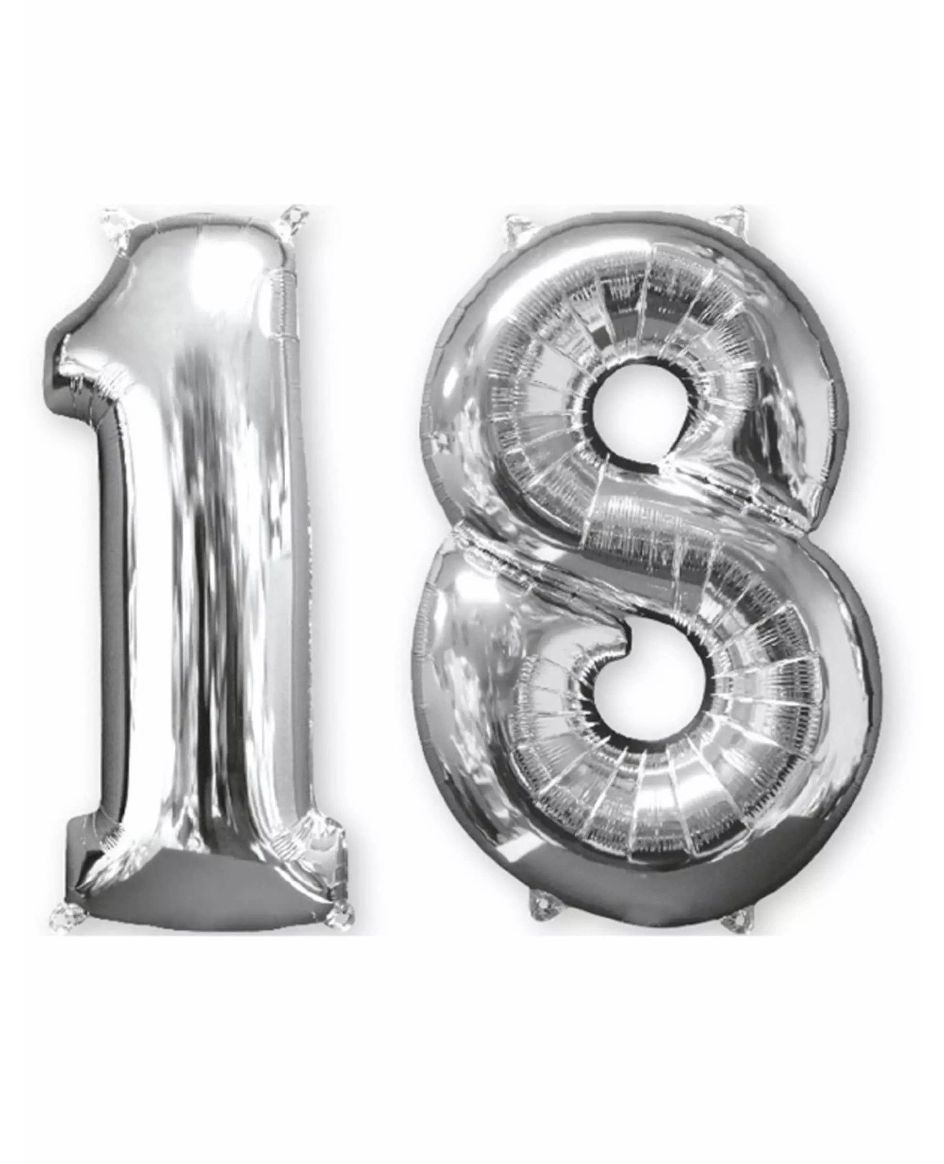 Sett med 2 sølvfargede folieballonger med nummer 18