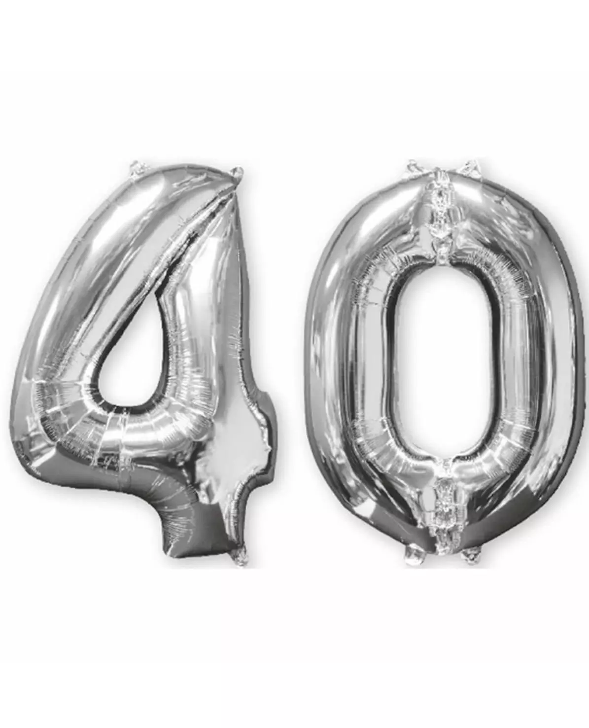 Sett med 2 sølvfargede folieballonger med nummer 40, 66 cm