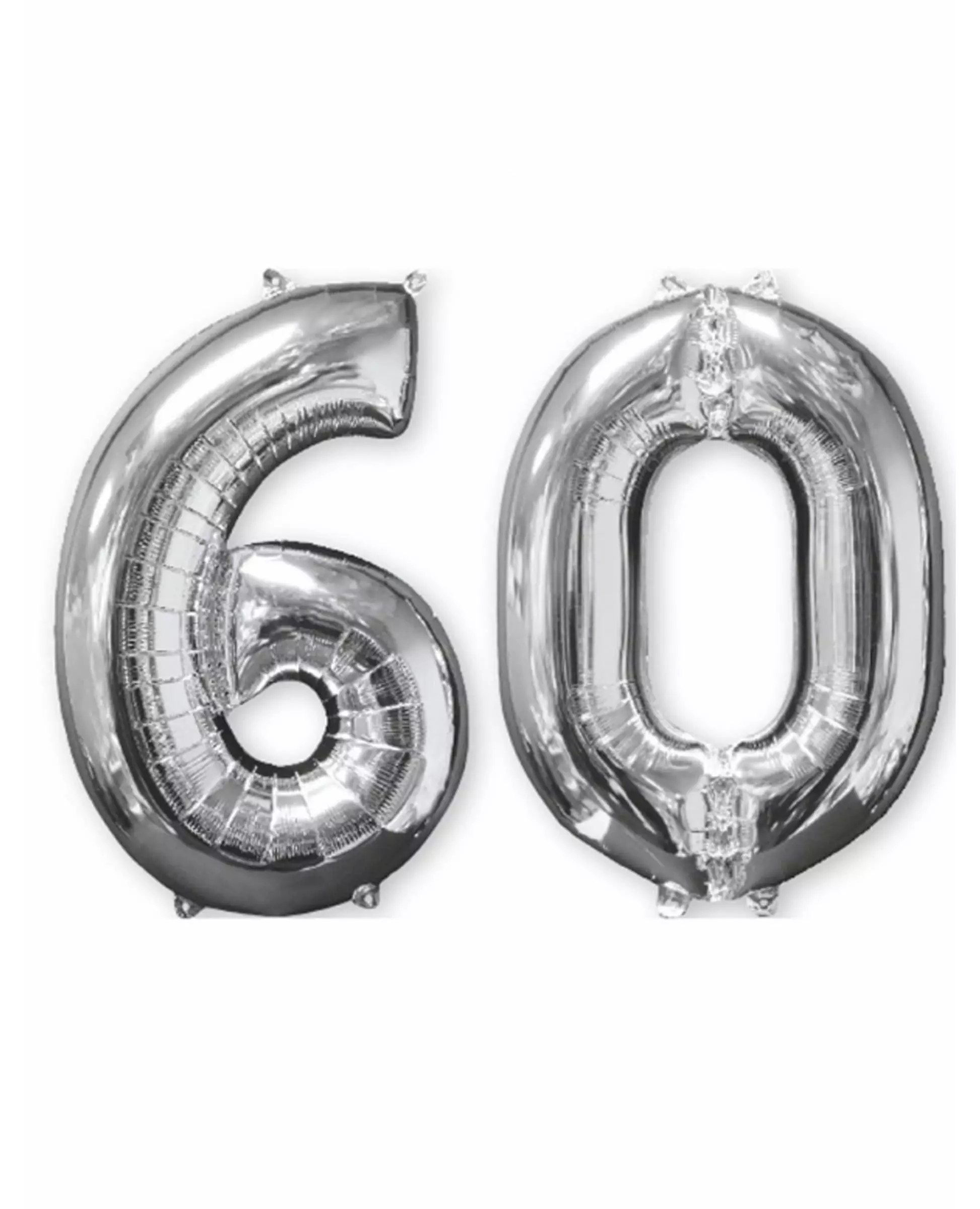Sett med 2 folieballonger 66 cm sølvfargede tallet 60 bursdagsballonger. Dette settet består av 2 folieballonger som representerer tallet 60.