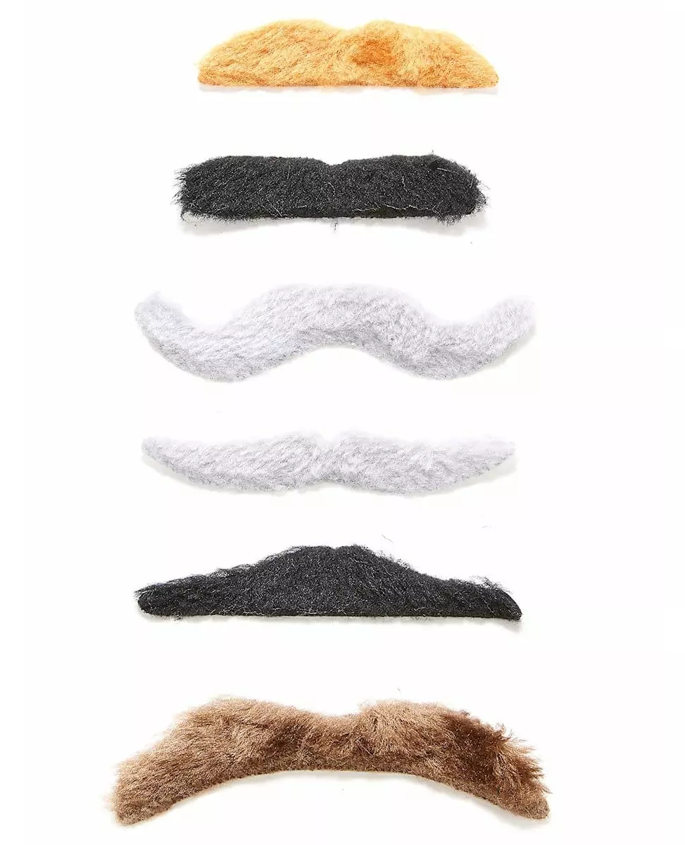Endre stilen din slik du vil! Dette settet består av 6 selvklebende barter i brunt, svart og grått. De måler mellom 7 og 9 cm. De er enkle å bruke; du trenger bare å fjerne beskyttelsesfilmen fra baksiden før du plasserer dem på ansiktet ditt. Disse bartene vil være det essensielle tilbehøret for å endre stilen din til et kostymefest. Inkludert tilbehør: 6 barter