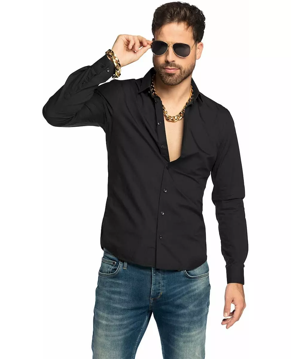 Bling bling! Dette bling bling-tilbehørssettet er for voksne. Det består av et par briller med gullinnfatning og svarte linser, et halskjede og et gullfarget, tykt nettingarmbånd. Dette bling bling-tilbehørssettet vil være perfekt til ditt neste kostymefest! Inkludert tilbehør: 1 halskjede 1 armbånd 1 par briller