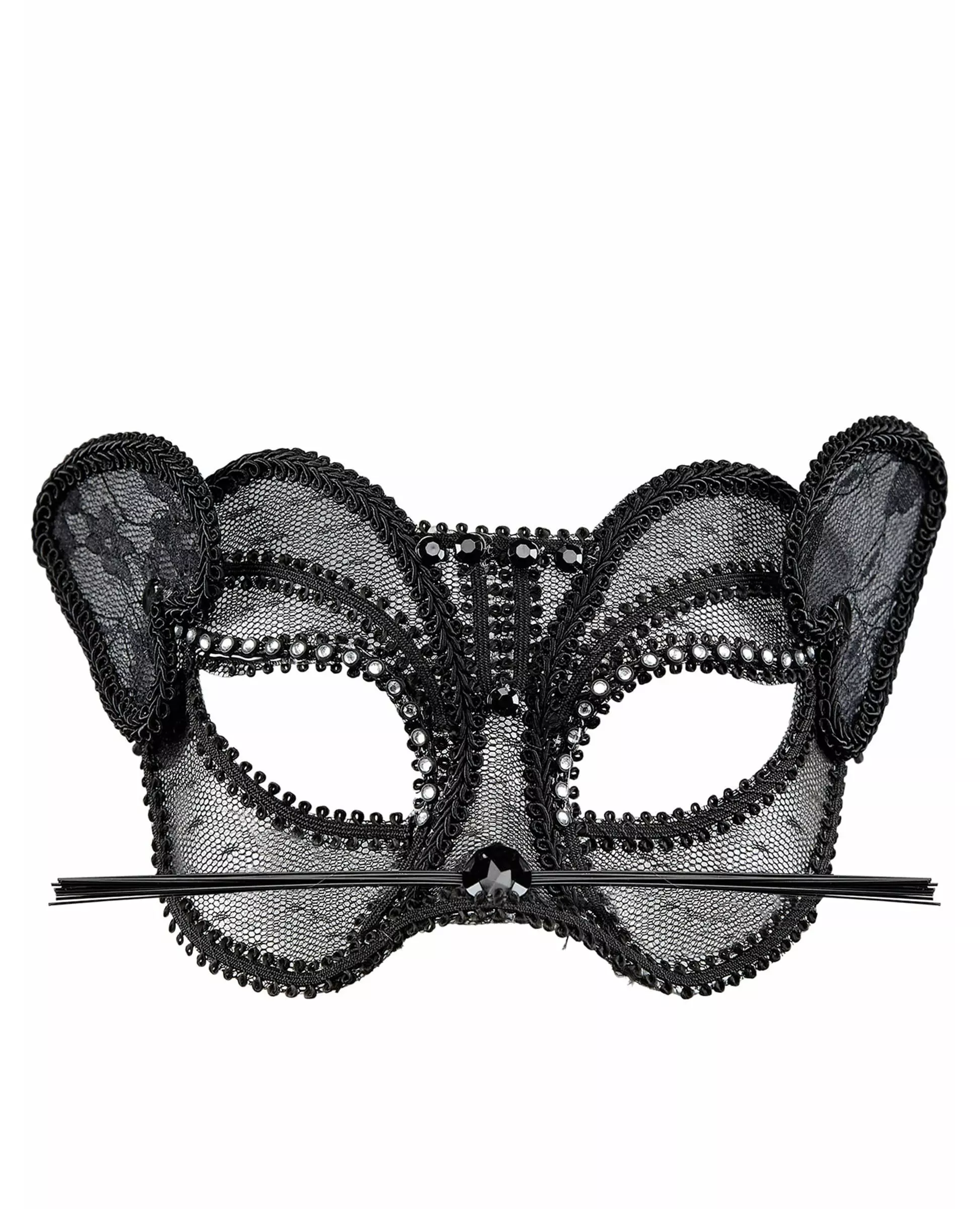 Sexy katt! Denne masken for kvinner forestiller en sexy katt. Halvmasken er laget av plast dekket med svart blonder og har gjennomsiktige strasssteiner rundt øynene og svart flette rundt. Værhårene står oppreist. Masken holdes på plass med en strikk som går bak hodet. Den måler omtrent 27 cm i bredden. Denne masken vil være ideell for å forbli inkognito på karnevalsdagen eller et maskeball mens du er sexy! Copyright Widmann SRL. Inkludert tilbehør: 1 maske Materiale: Plast