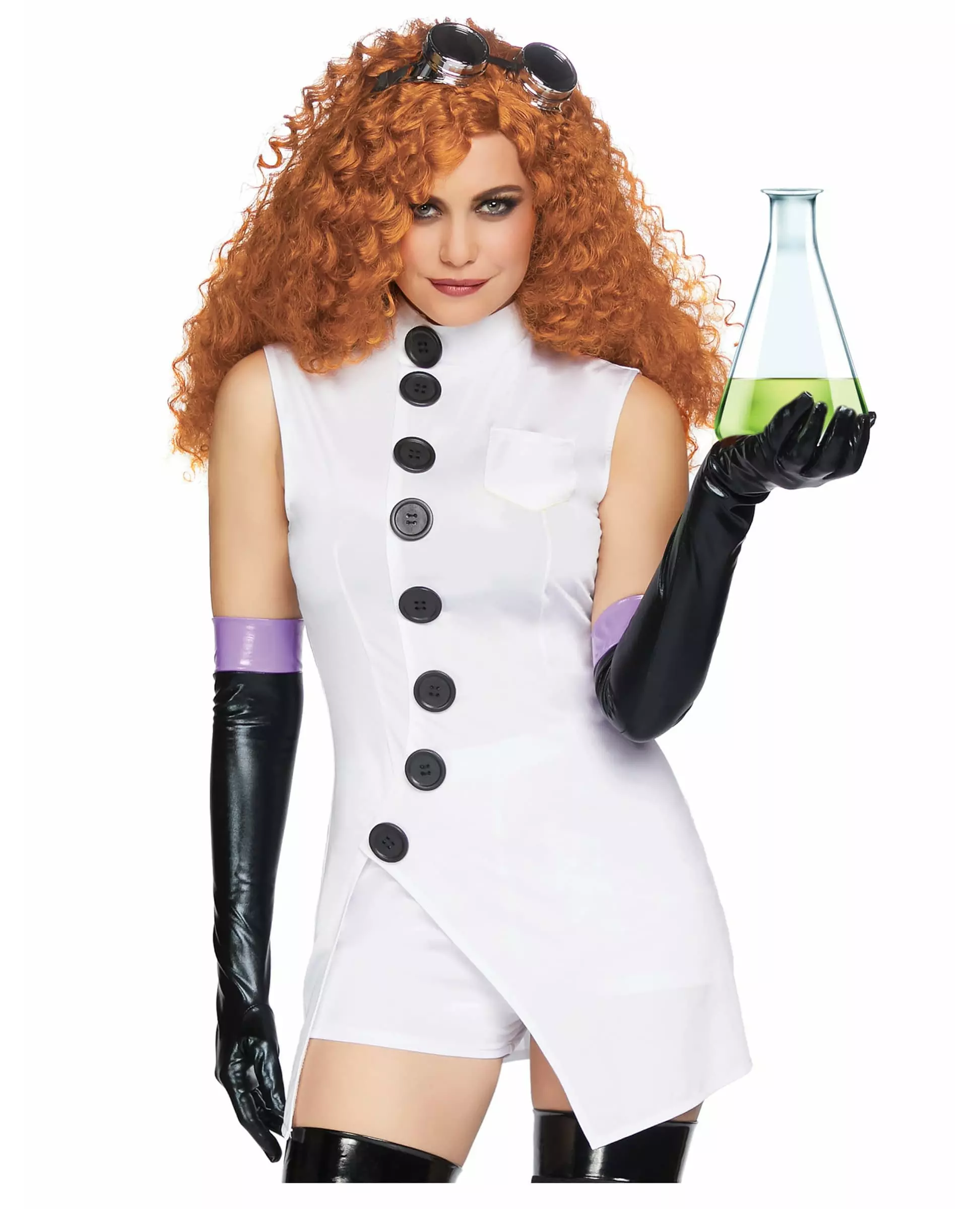 Sexy, luksuriøst psykovitenskapsmannskostyme for kvinner. Velg det sexy psykovitenskapsmannsutseendet. Dette sexy, luksuriøse psykovitenskapsmannskostymet er for kvinner, og det inkluderer en laboratoriefrakk, shorts, lange hansker og briller. Voksenkostymet inkluderer: Laboratoriefrakk, shorts, hansker, briller.
