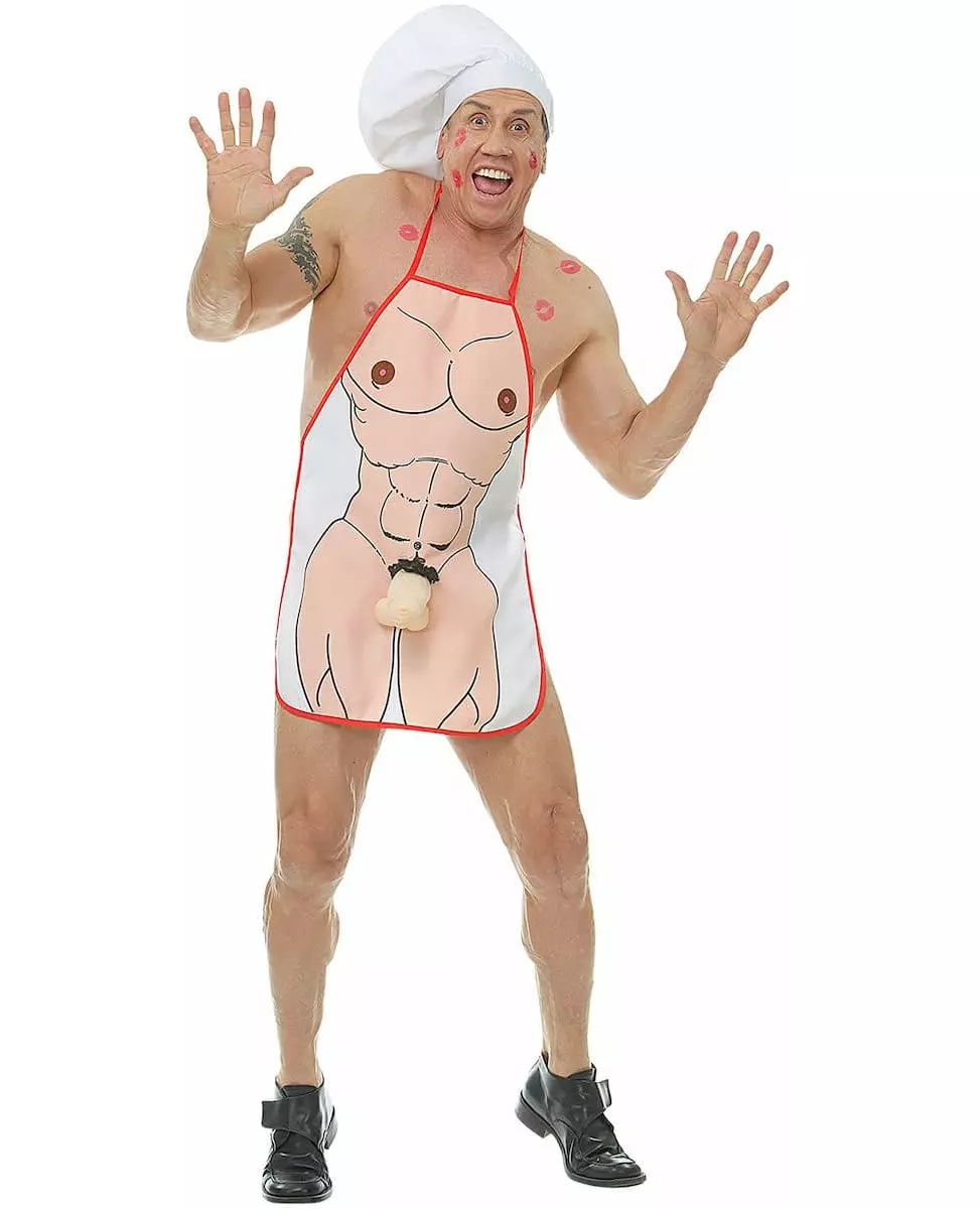 Vis frem dine fortreffeligheter Dette humoristiske forkleet er for voksne (kun forkleet er inkludert). Det er hvitt, med en tegning som forestiller en muskuløs mannskropp. En skumpenis er også tilstede, med falske svarte hår. Dette forkleet vil være perfekt for å krydre hverdagen din på en original måte. Inkludert tilbehør: Forkle Materiale: 100 % polyester Pleie: Håndvask