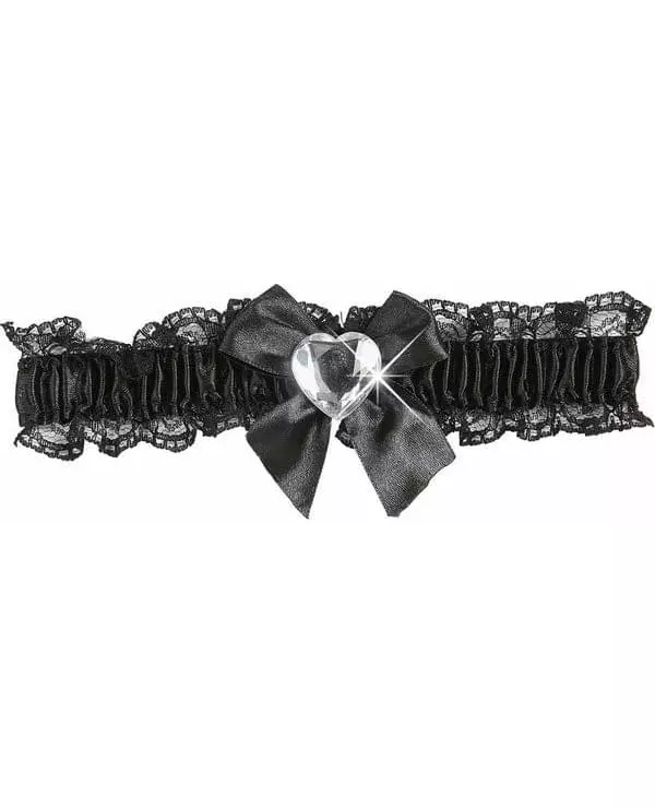 Forfør din Valentine med dette pene strømpebåndet. Dette sexy, svarte strømpebåndet for kvinner er elastisk. Det er laget av satengstoff, omgitt av svart blonder. En satengsløyfe med et plasthjerte pryder dette sexy strømpebåndet. Dette tilbehøret vil være perfekt for å fullføre et sexy antrekk til Valentinsdagen. «Copyright Widmann SRL». «Copyright Widmann SRL. Inkludert tilbehør: Strømpebånd