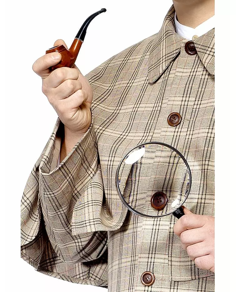 Inkluderer forstørrelsesglass og pipe! Dette settet med den formidable engelske detektiven består av et ekte forstørrelsesglass og en pipe med treeffekt. Nødvendig tilbehør som kompletterer et detektivkostyme på karnevalsdagen eller til en utkledningsfest.