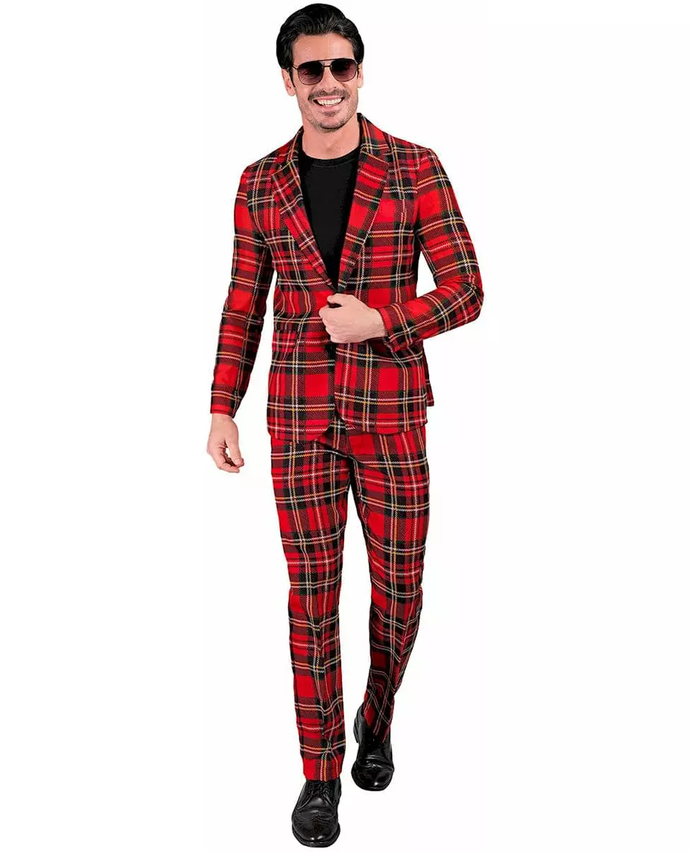 En elegant og stilig stil! Den skotske tartanmønstrede drakten for voksne er et originalt og stilig antrekk, perfekt for å tiltrekke seg oppmerksomhet med et snev av klassisk sjarm. Settet inkluderer en elegant jakke, utsmykket med det berømte røde og svarte skotske rutemønsteret, subtilt utsmykket med fine gule linjer. Designet med et moderne og tettsittende snitt, sikrer jakken utmerket støtte samtidig som den tilbyr et sofistikert utseende, ideelt for ulike festlige anledninger. De matchende buksene fullfører dette antrekket med sitt matchende tartanmønster, noe som gir raffinert visuell kontinuitet. Det tettsittende snittet fremhever silhuetten samtidig som det sikrer god komfort, noe som gjør det til et perfekt valg for dans eller bevegelse med letthet. Dette kostymet er ideelt for temafester, originale bryllup eller arrangementer der stil og dristighet er avgjørende. Dette antrekket kombinerer skotsk tradisjon og modernitet for en minneverdig effekt. Inkludert tilbehør: 1 jakke 1 par bukser Materiale: 100 % polyester Pleie: Håndvask