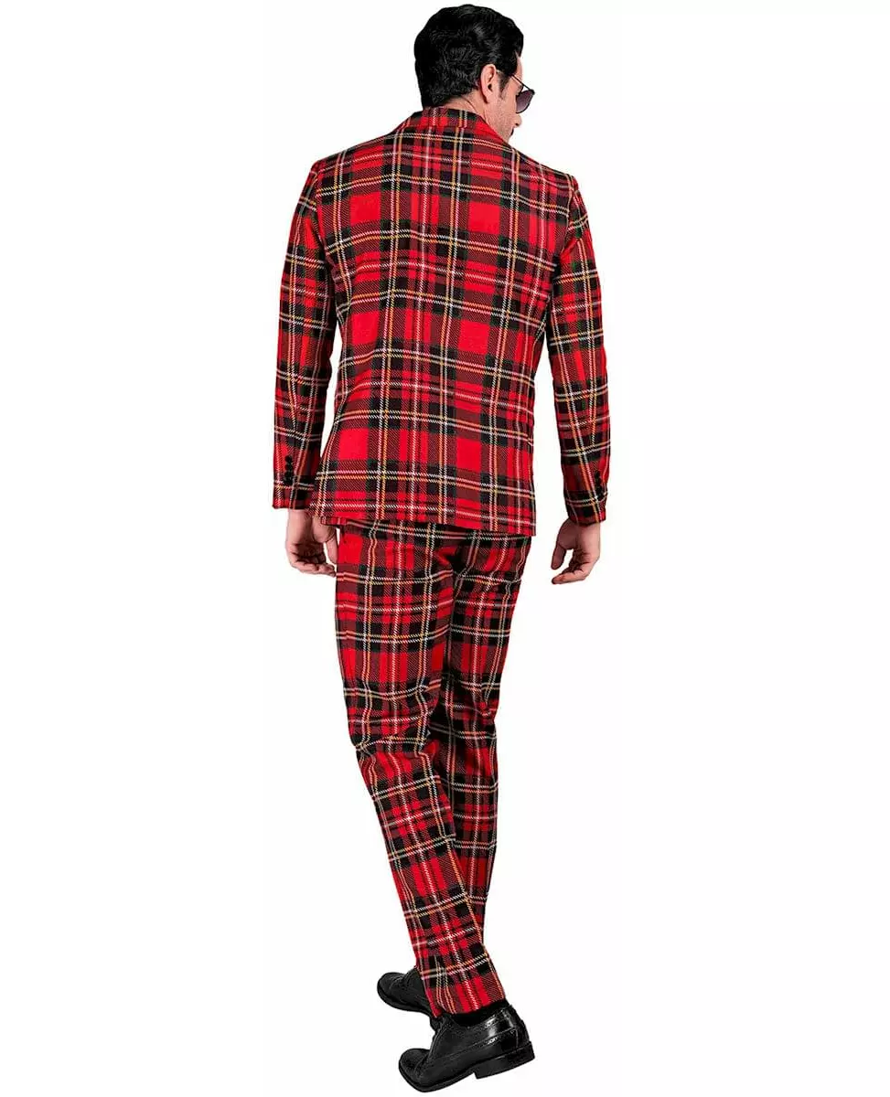 En elegant og stilig stil! Den skotske tartanmønstrede drakten for voksne er et originalt og stilig antrekk, perfekt for å tiltrekke seg oppmerksomhet med et snev av klassisk sjarm. Settet inkluderer en elegant jakke, utsmykket med det berømte røde og svarte skotske rutemønsteret, subtilt utsmykket med fine gule linjer. Designet med et moderne og tettsittende snitt, sikrer jakken utmerket støtte samtidig som den tilbyr et sofistikert utseende, ideelt for ulike festlige anledninger. De matchende buksene fullfører dette antrekket med sitt matchende tartanmønster, noe som gir raffinert visuell kontinuitet. Det tettsittende snittet fremhever silhuetten samtidig som det sikrer god komfort, noe som gjør det til et perfekt valg for dans eller bevegelse med letthet. Dette kostymet er ideelt for temafester, originale bryllup eller arrangementer der stil og dristighet er avgjørende. Dette antrekket kombinerer skotsk tradisjon og modernitet for en minneverdig effekt. Inkludert tilbehør: 1 jakke 1 par bukser Materiale: 100 % polyester Pleie: Håndvask