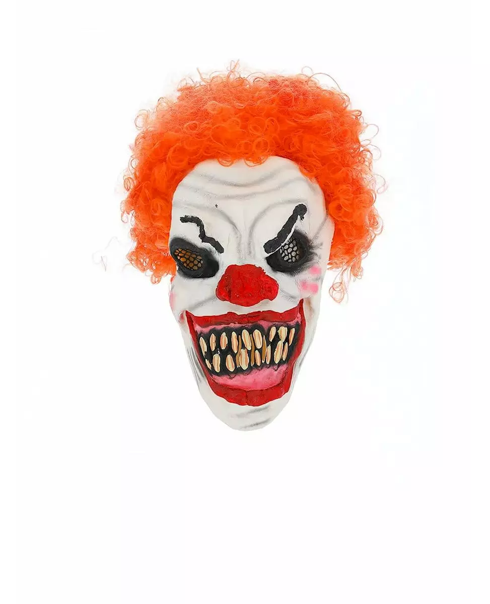 Med hår! Denne klovnemasken for voksne har krøllete rødt hår! Ansiktstrekkene og tennene gjør den skummel og lar deg spille en klovn som ikke er morsom i det hele tatt, snarere tvert imot! Naboene dine vil angre på at de så deg på Halloween-kvelden! De markerte svarte rynkene og det brede gulaktige smilet gir en skremmende gjengivelse! I tillegg holdes den bak hodet takket være en strikk. Skremm vennene dine helt anonymt til Halloween-festen din! Inkludert tilbehør: Maske Materiale: Lateks
