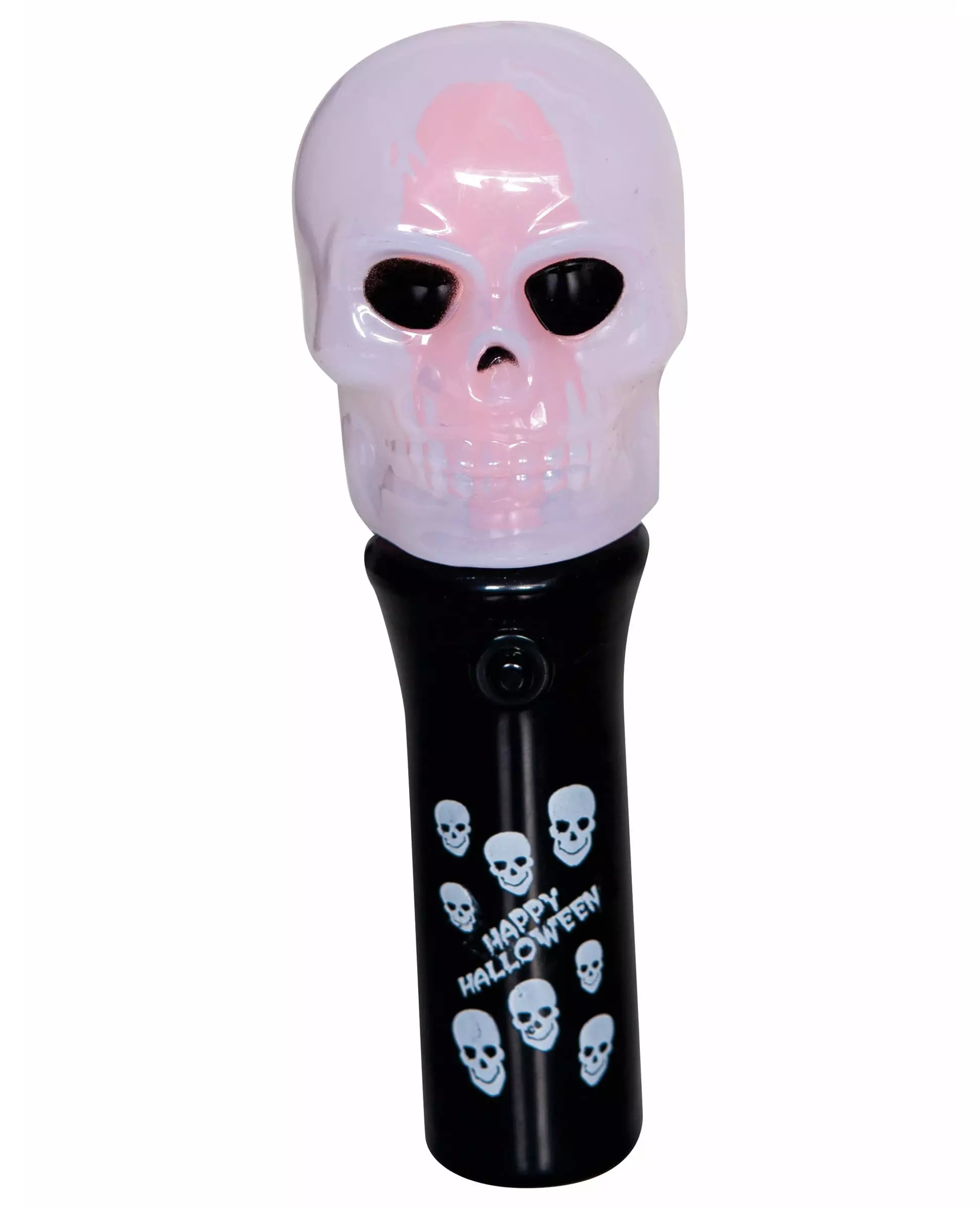 En fascinerende lommelykt! Denne spinnerlykten er lyssterk. Denne stavlykten er laget av en LED-sirkelformet hodeskalle. På den svarte delen, som lar deg holde den, er det en av/på-knapp. Den lar deg lyse opp hodeskallen i flere farger. Denne lommelykten vil være perfekt for å få folk til å vende seg mot Halloween! Materiale: Plast. Inkludert tilbehør: 1 LED-snurrlykt