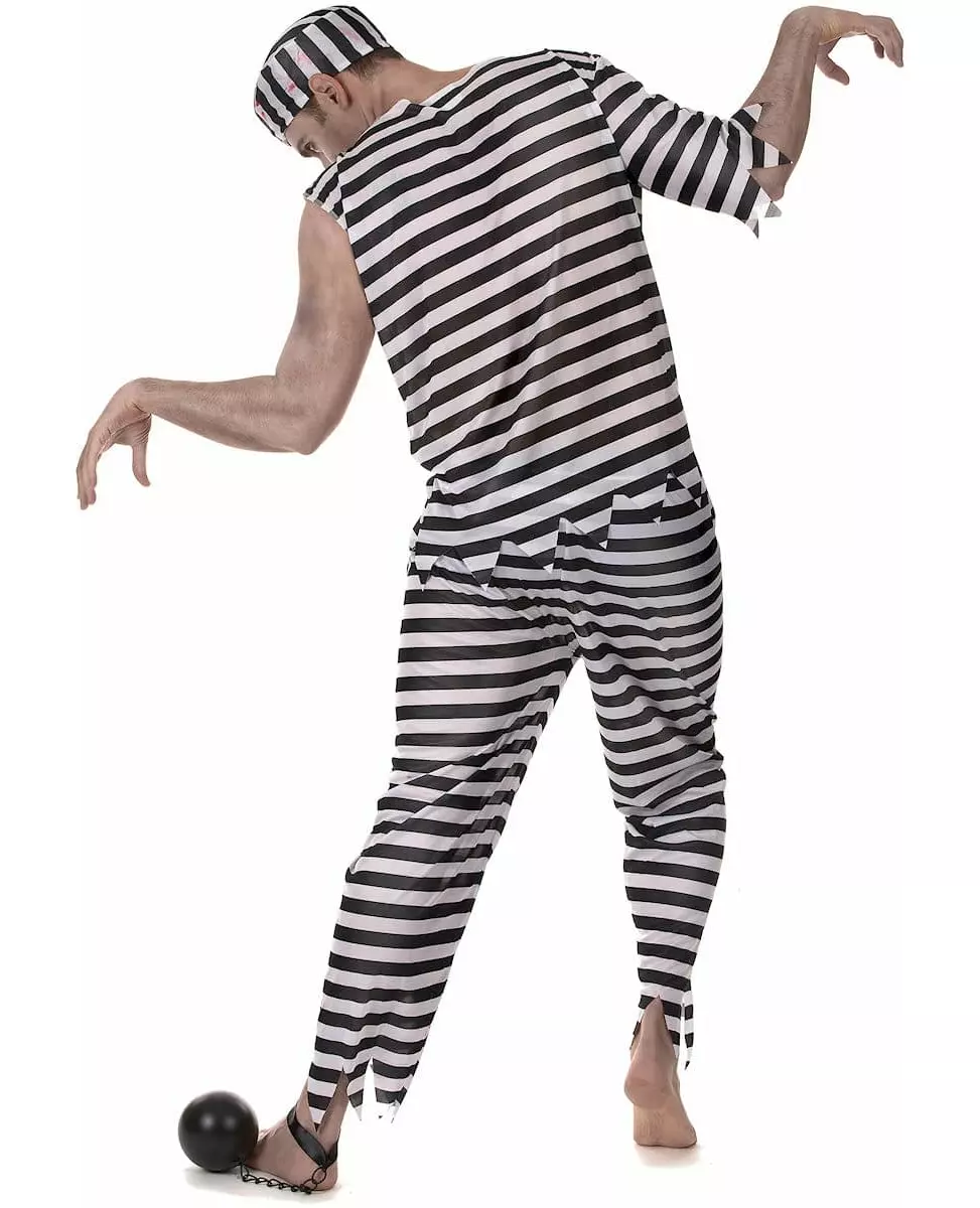 Det er på tide å rømme! Dette zombiefangekostymet er for menn og inkluderer en t-skjorte, bukser og et hodeplagg (sminke og ball og kjede er ikke inkludert). Toppen (asymmetrisk ved ermene) og buksene er stripete i svart og hvitt. Blodflekker dekker stoffet og er kuttet i punkter ved ermene, kragen, midjen og nedre del av bena. Et stort sår laget av myk plast som representerer innvoller er sydd på magen. Hodeplagget, laget av fint, mykt stoff, passer alle hodestørrelser. Dette er det perfekte kostymet for en vellykket zombievandring! Tips: Ikke nøl med å legge til enda flere falske blodsprut for å fremheve gørr-effekten! Inkludert tilbehør: Hodeplagg T-skjorte Bukser Materiale: 100 % polyester Vedlikehold: Håndvask