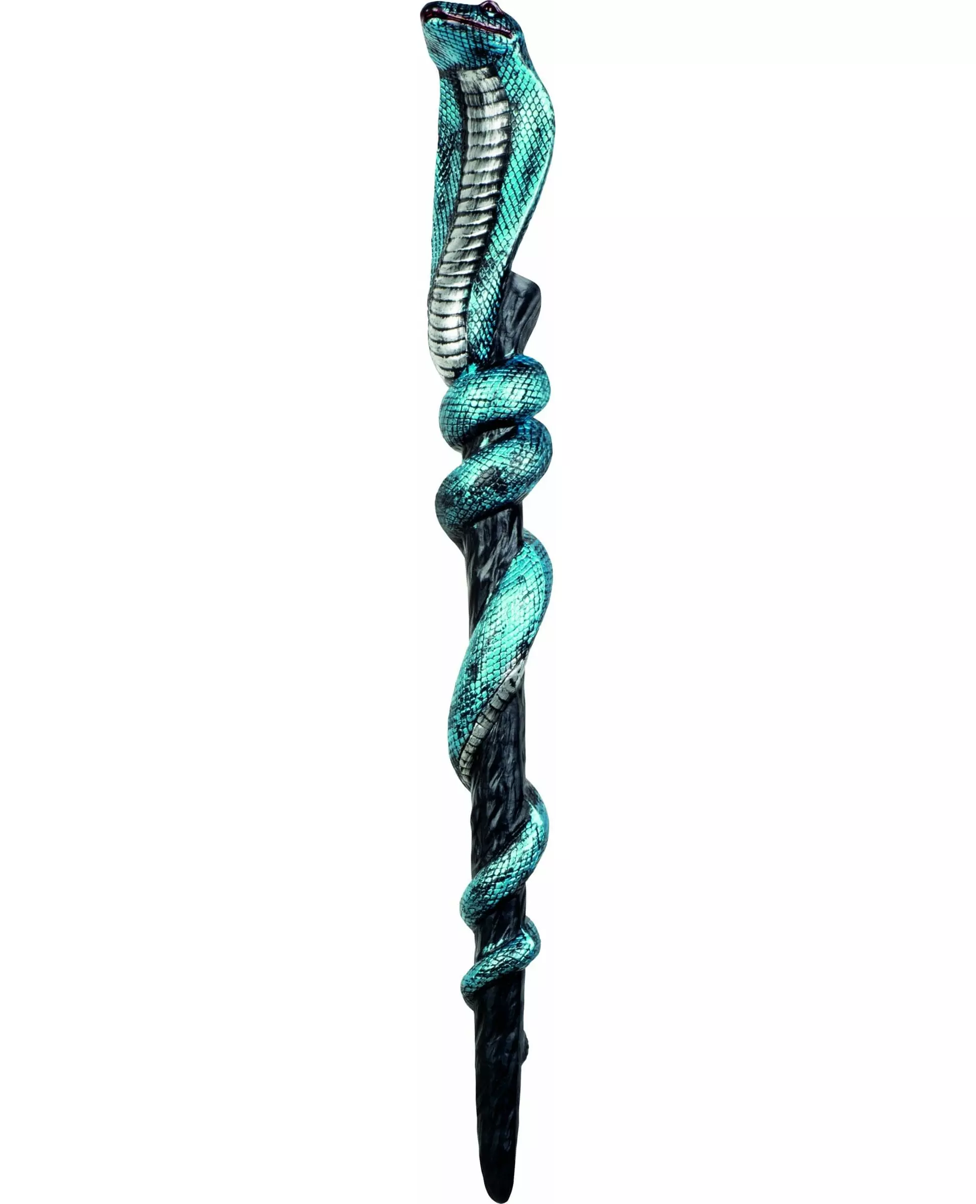 Bli mesteren i svart magi. Dette plastsepteret måler omtrent 64 cm i lengden. Det forestiller en svart stav som en metallisk blå slange er viklet rundt. Dette tilbehøret vil være perfekt for å fullføre et trollmannskostyme til Halloween eller en kostymefest med venner. Inkludert tilbehør: Septer. Materiale: Plast.