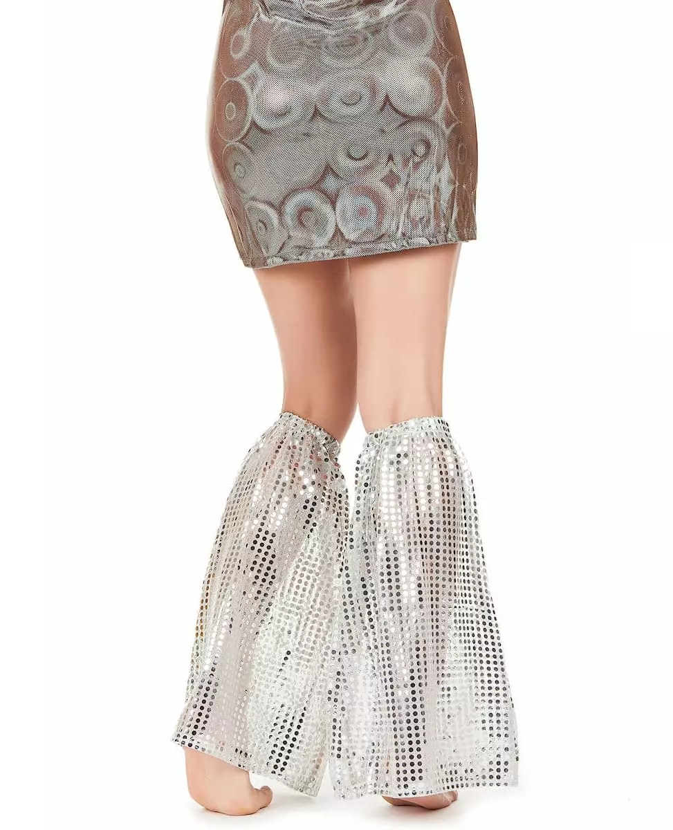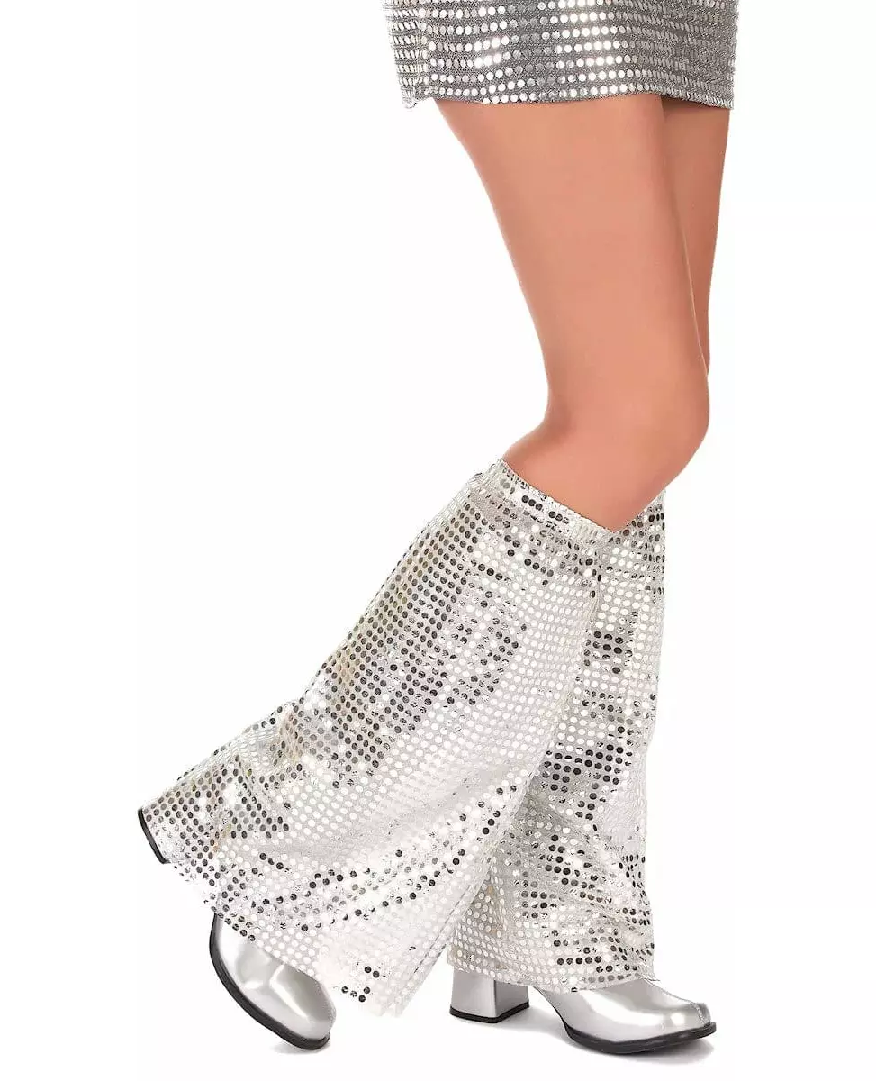 Gi discoantrekket ditt et snev av glitter Disse sølvfargede disco-støvlettene er det perfekte tilbehøret for å fullføre 70-tallsantrekket ditt og forvandle deg til et ekte discoikon. De er dekket av speilvendte sølvpaljetter, og fanger lyset for en skimrende og spektakulær effekt med hver bevegelse. De er enkle å ta på, passer over de fleste sko og dekker elegant bena for en uimotståelig retro, utsvingt effekt. Det utsvingte snittet minner om ikoniske discofestantrekk, ideelle for dansing natten lang! Perfekt for en temafest, et karneval eller til og med et show, disse støvlettene vil gjøre deg til den ubestridte stjernen på dansegulvet. Inkludert tilbehør: 2 leggvarmere Materiale: 100 % polyester