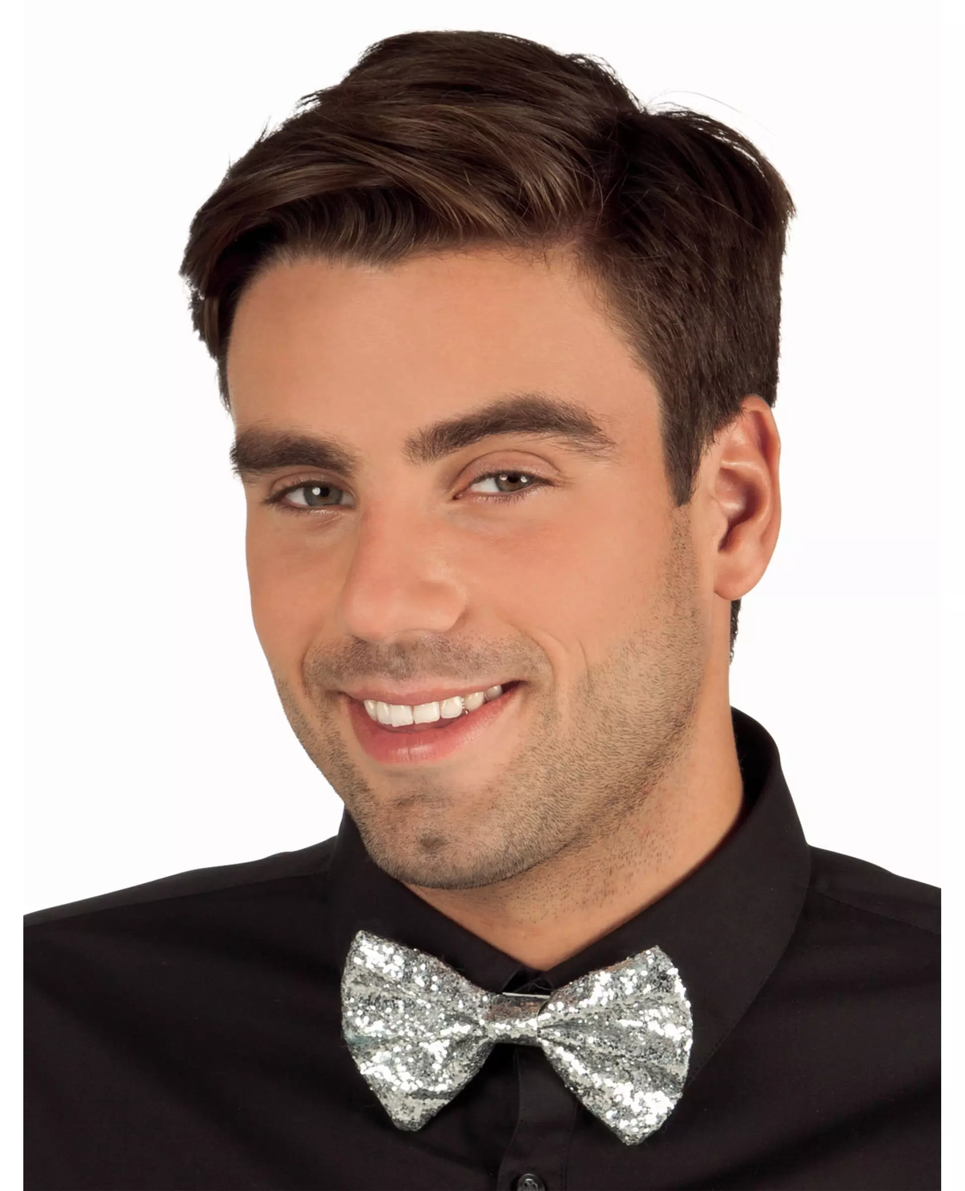 Fullt paljettbesatt! Denne sløyfen er helt i sølv og dekorert med paljetter. Perfekt for å forbedre et sobert antrekk, den måler 12 x 7 cm, så den vil ikke gå ubemerket hen! Den festes enkelt rundt halsen takket være en strikk! Vær elegant og ukonvensjonell med denne sløyfen og gjør et inntrykk på kostymefester! Inkludert tilbehør: Sløyfe Materiale: 50 % polyester