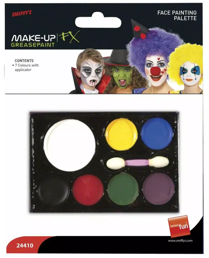7 farger! Denne sminkepaletten består av 7 basisfarger: hvit, gul, rød, grønn, blå, svart og lilla, samt en børste. Sminken påføres med børsten etter at den er fuktet. Sminkefjerning gjøres med såpe og vann. Kan brukes i 12 måneder etter åpning. Dette settet, med basisfarger, lar deg enkelt lage mange forskjellige og varierte sminkeutseende. Inkludert tilbehør: 1 palett 6 farger 1 børste