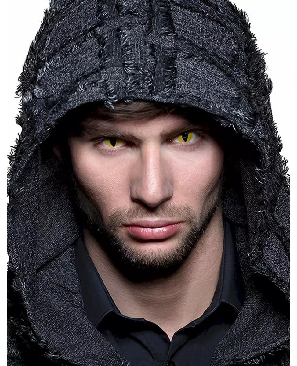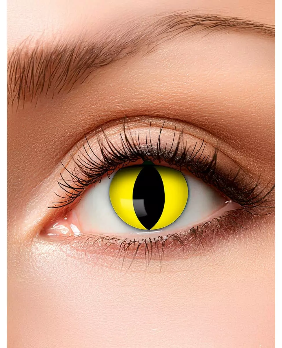 Slangelignende utseende Disse fancy slangeøyelinsene er for voksne. De kan brukes i 3 måneder etter åpning. De imiterer den atypiske formen til den svarte pupillen til slangeøyne med gul bakgrunn. Sørg for å lese bruksanvisningen. Disse vil være perfekte for å anta et slangelig utseende til et kostymefest. Inkludert tilbehør: 2 linser