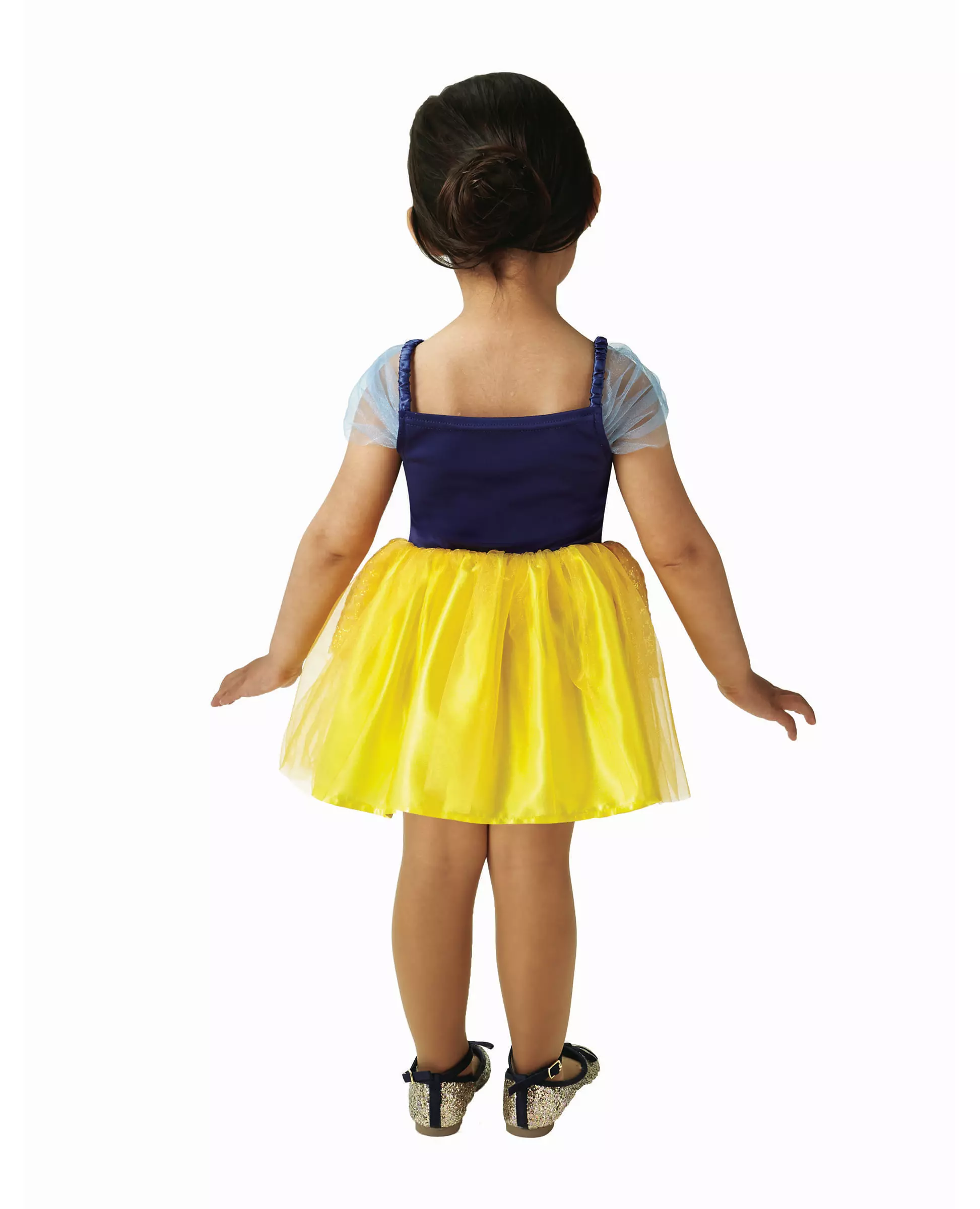 Gjør datteren din til en Disney-prinsesse Dette Snøhvit™-kostymet for jenter er offisielt lisensiert av Disney™. Det består av en kjole (sko og eple ikke inkludert). Kjolens overdel er satengblå, med prinsesse Snøhvit i midten. Kjolens underdel er gul, med en fin tyll med paljettmønster i livet. Dette kostymet vil være perfekt for karneval eller en prinsessetemafest. NB: Dette produktet selges i én størrelse, for et barn fra omtrent 3 til 6 år. Inkludert tilbehør: Kjole Materiale: 100 % polyester Pleie: Håndvask