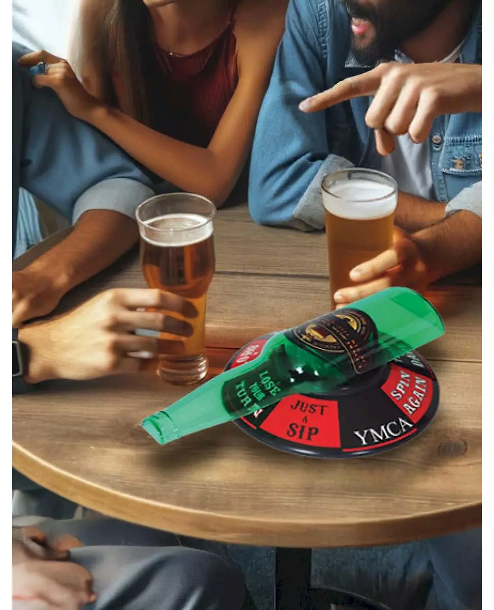 Snurr flasken og ta utfordringen! Dette flaskesnurrspillet på omtrent 18 cm har en plastflaske montert på et hjul med forskjellige utfordringer skrevet på den. Snurr den og la skjebnen bestemme: ta en slurk, syng, tap turen din eller prøv lykken igjen! En klassiker for kvelder med venner fulle av latter og overraskelser. Ideelt for å live opp en aperitiff, et utdrikningslag eller en hjemmefest, dette enkle lille spillet lover fantastiske øyeblikk!. Inkludert tilbehør: 1 spill