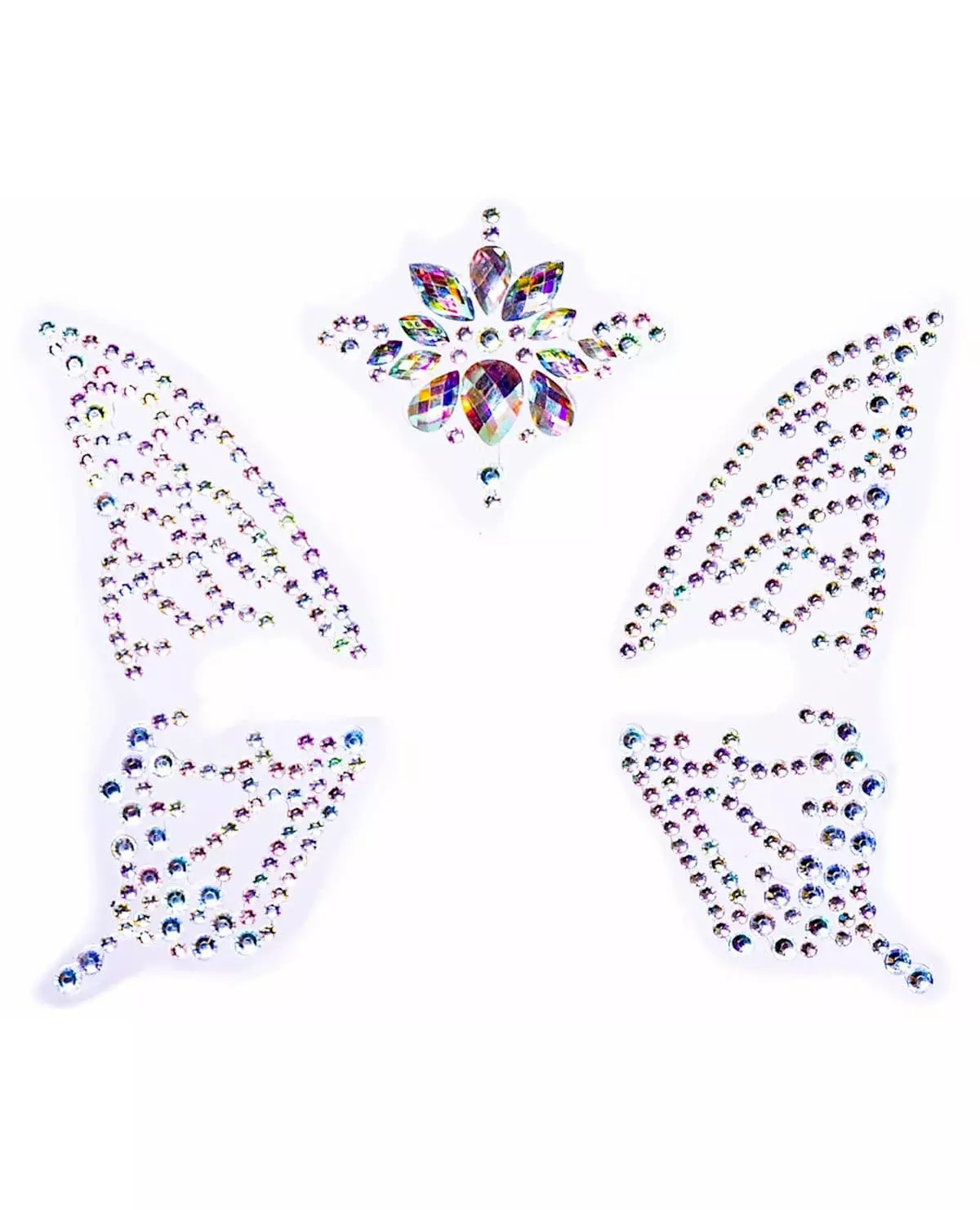 En vakker sommerfugl! Disse selvklebende strasssteinene er til ansikt og kropp. Settet inneholder hvite og sølvfargede strasssteiner i forskjellige former og størrelser. Du kan bruke disse strasssteinene til å lage en vakker sommerfugl. Velg glans med disse selvklebende sommerfugl-strassteinene til nyttårsaften eller karnevalet! Ingredienser: 100 % akryl. Inkludert tilbehør: Strasssteiner