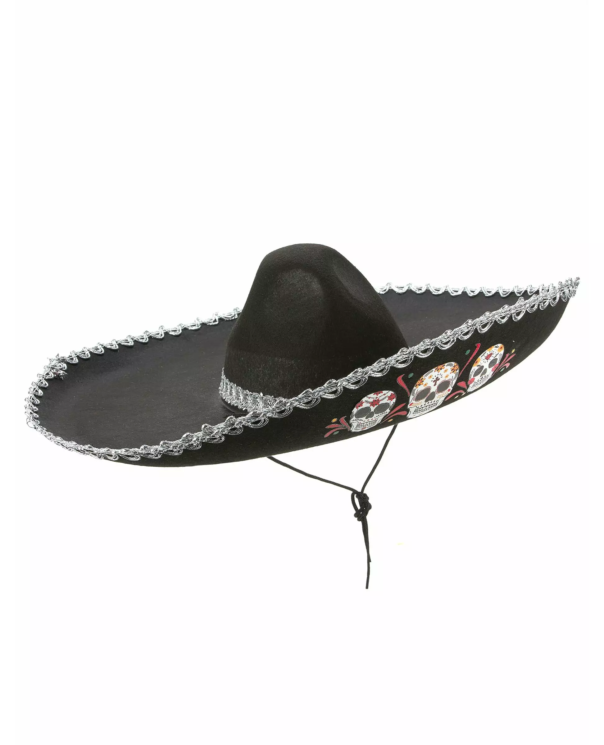 Sort Dia de Los Muertos Sombrero med sølvfinish for voksne
