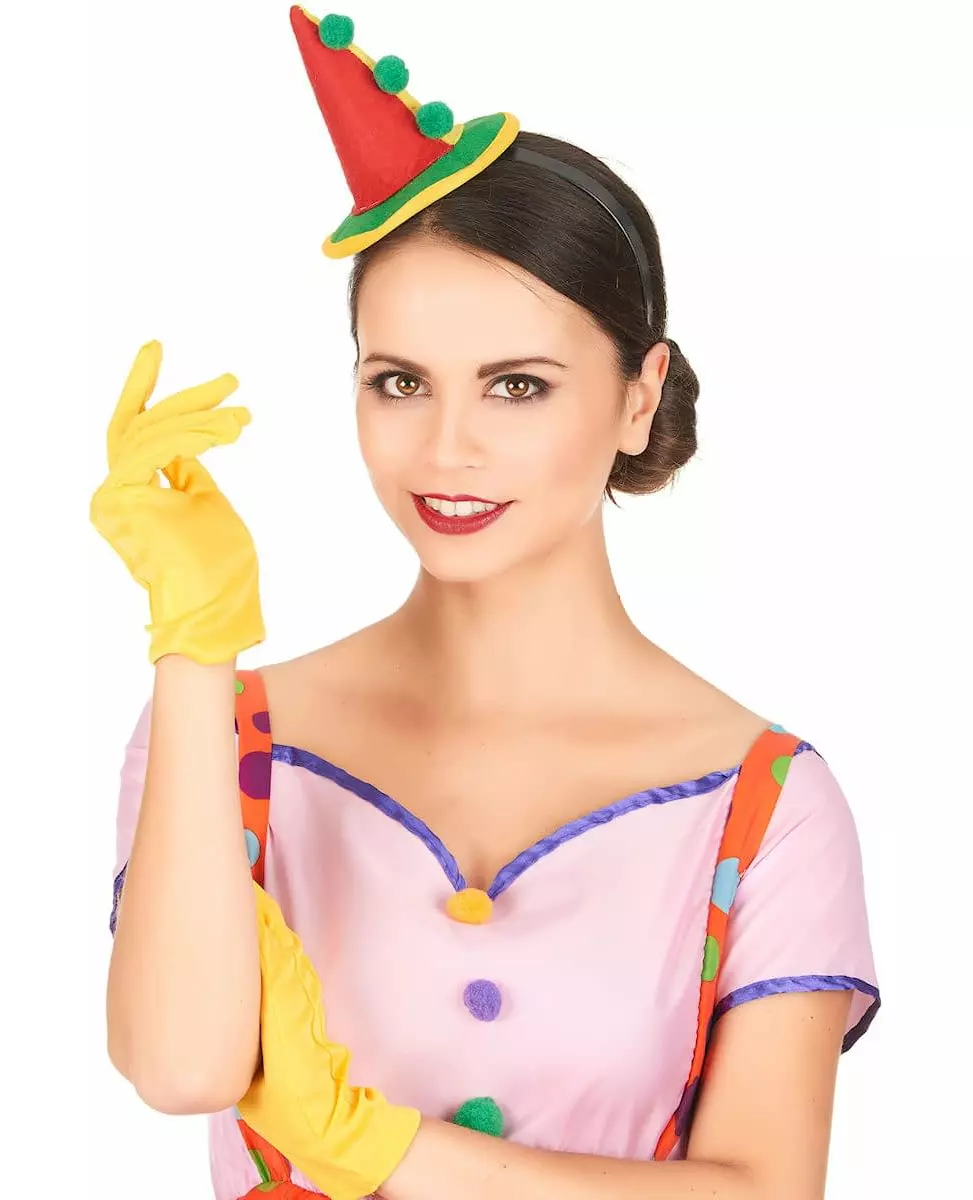 Liten hatt Dette pannebåndet for voksne er laget av svart plast, toppet med en liten spiss klovnehatt. I ungdommelige farger, grønn og rød, er det små grønne pomponger foran. Her er en veldig flørtende måte å pynte et sirkusklovnekostyme på til karneval, et show eller andre utkledningsarrangementer!. Inkludert tilbehør: Pannebånd